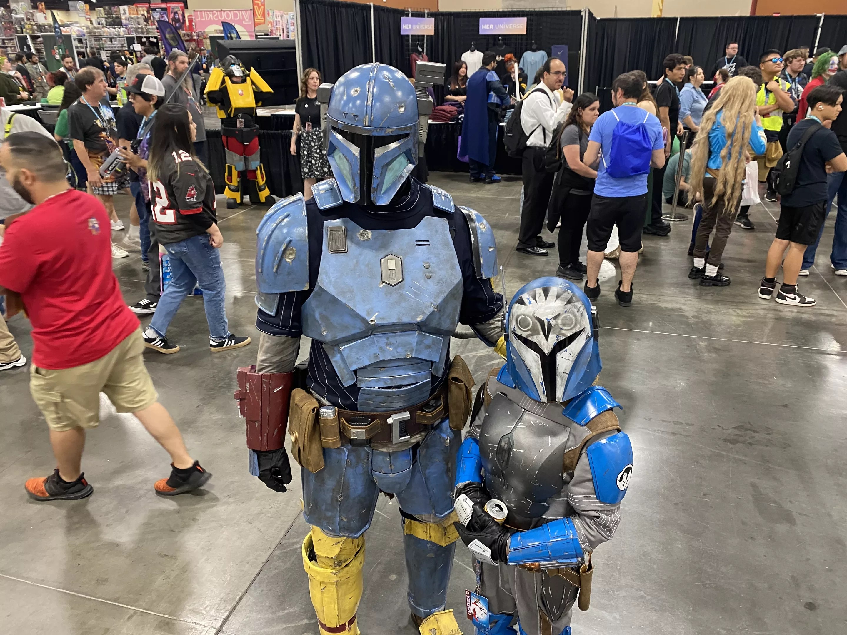 Saturday, May 18 Mandalorian cosplayers in the Exhibitor Hall at Phoenix Fan Fusion 2023. Benjamin Leatherman