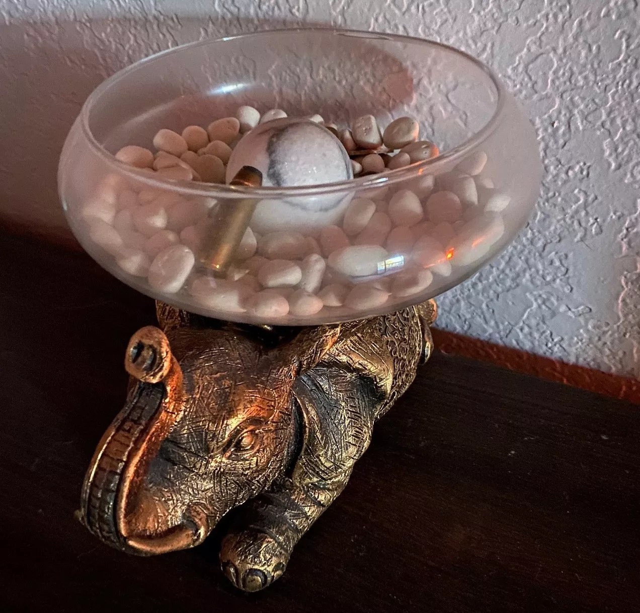 Alex keeps his brother’s ashes in this bowl by his bed. It reminds him of the last Christmas gift his brother gave to him, a wooden-carved elephant head.