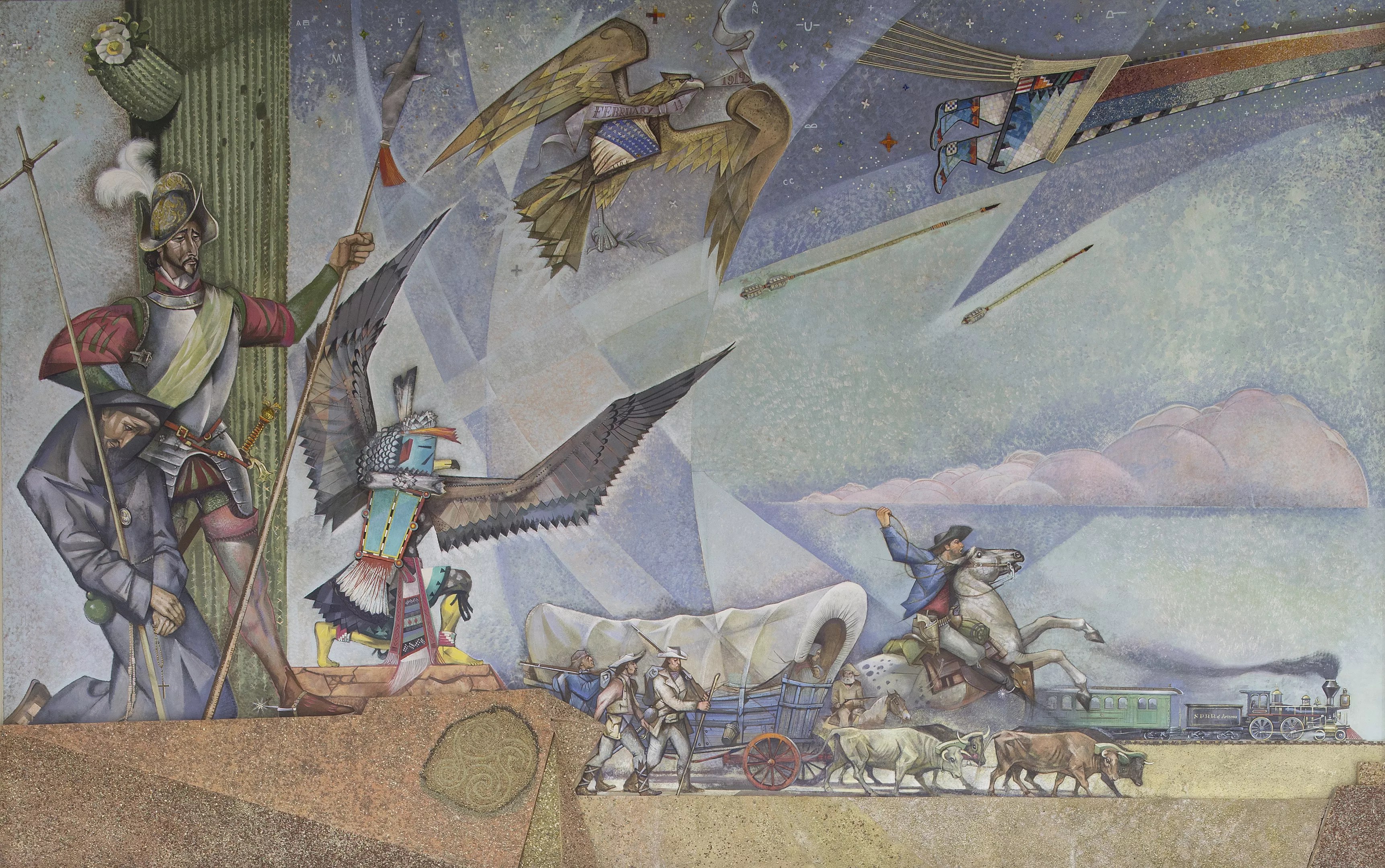 Millions of travelers have passed by Paul Coze’s massive mixed-media mural at Phoenix Sky Harbor International Airport. Now, the mural itself is destined to travel, as part of significant airport renovations. The Phoenix is being moved from a Terminal 2 lobby to the airport’s rental car center in 2021.