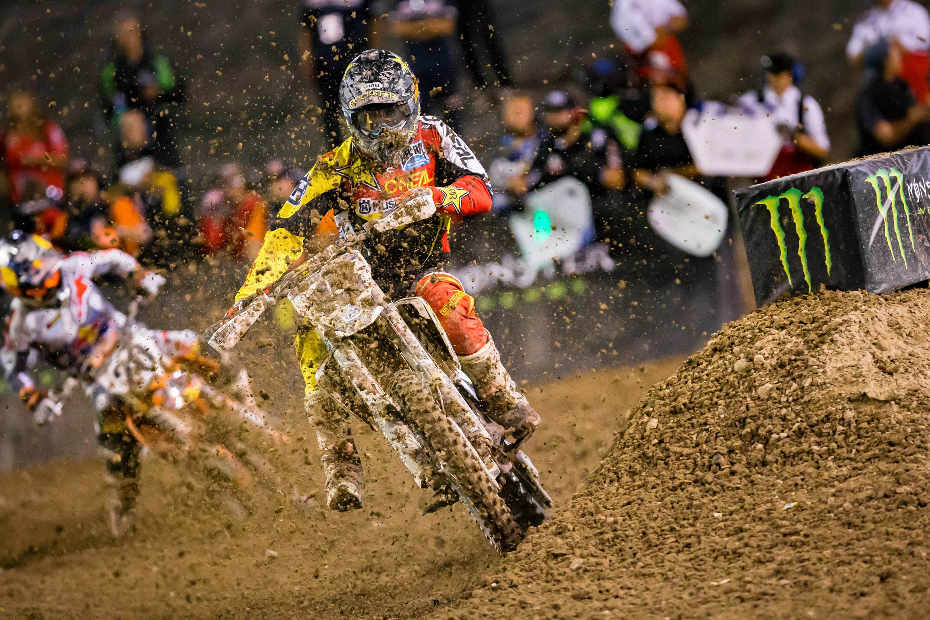 During supercross races, riders speed around indoor dirt tracks, performing jumps and turns at high speeds on motor bikes. Monster Energy AMA Supercross will bring professional off-road motorcycle racing to Glendale on Saturday, January 27, starting at 5:30 p.m.