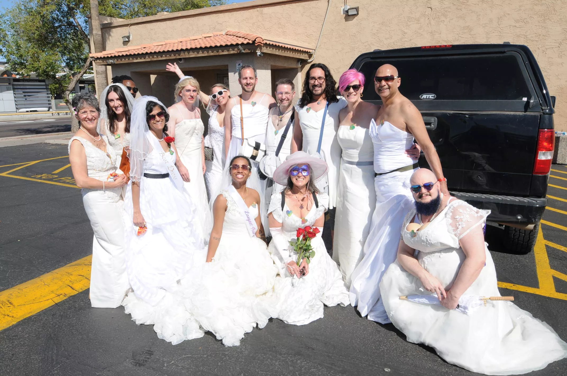 Anyone 21 and over, regardless of their gender identity or sexual orientation, can participate in the Brides of March bar crawl. Dawn O’Brien, one of the organizers of the event, told Phoenix New Times in 2024 the event isn’t specifically an LGBTQ+ event and is open to anyone of legal drinking age. “It includes everybody, no matter who you are, what you’re into or what your gender happens to be,” O’Brien says. “It’s for anyone who’s willing to wear a wedding dress in public and have fun.”