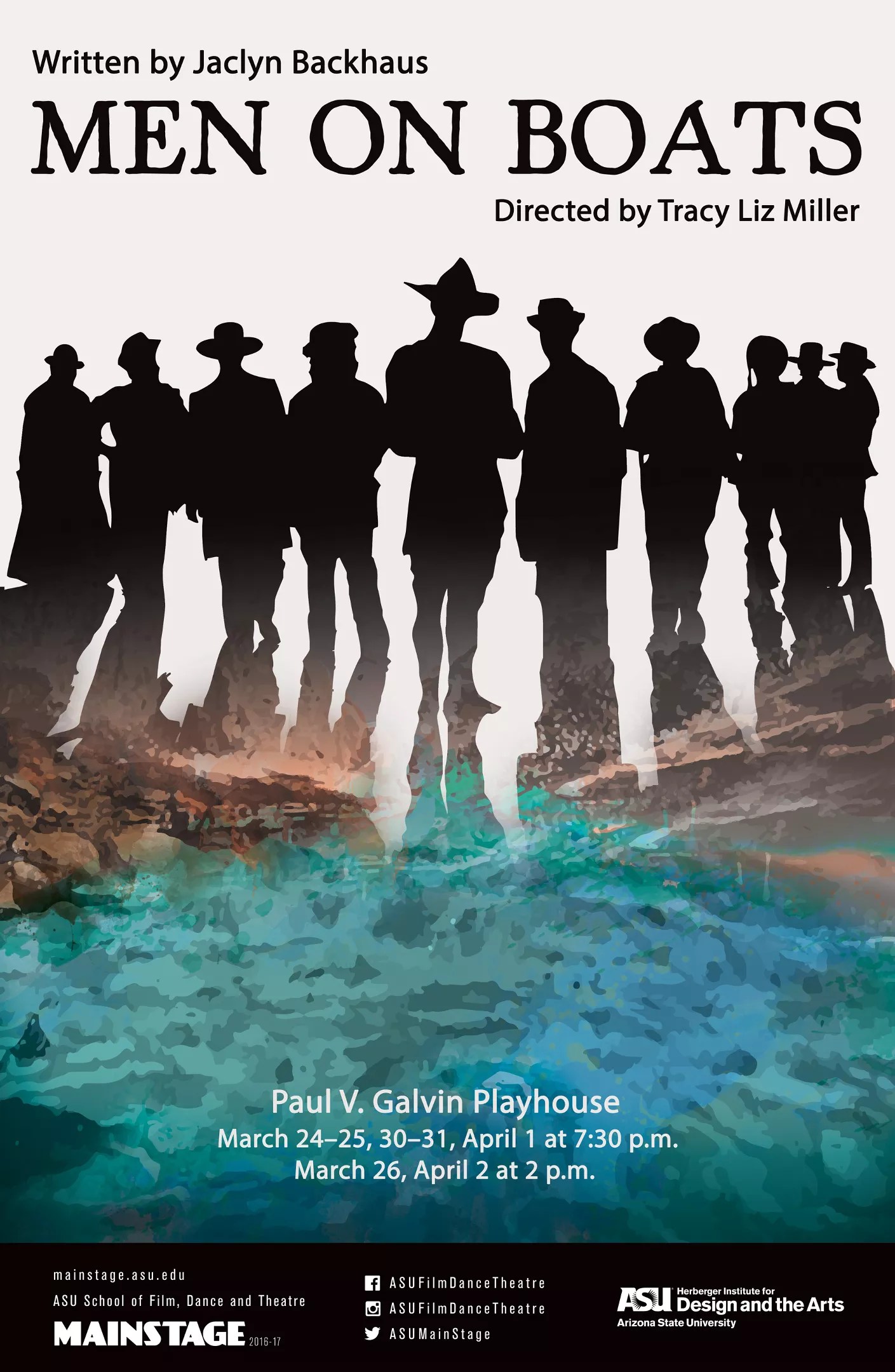 The Powell Grand Canyon expedition of 1869 probably evokes images of a certain type of explorer. The ASU School of Film, Dance, and Theatre’s production of Jaclyn Backhaus’ Men on Boats delves into and turns on its head the idea of white masculinity and privilege by casting a diverse group of actresses in roles normally reserved for men, including a military veteran, a hunter, an adventure seeker, and a one-armed captain. Told through chronological scenes, the 10-person show engages in a unique form of storytelling blending historical themes, the writings of explorer John Wesley Powell, and contemporary language and humor.