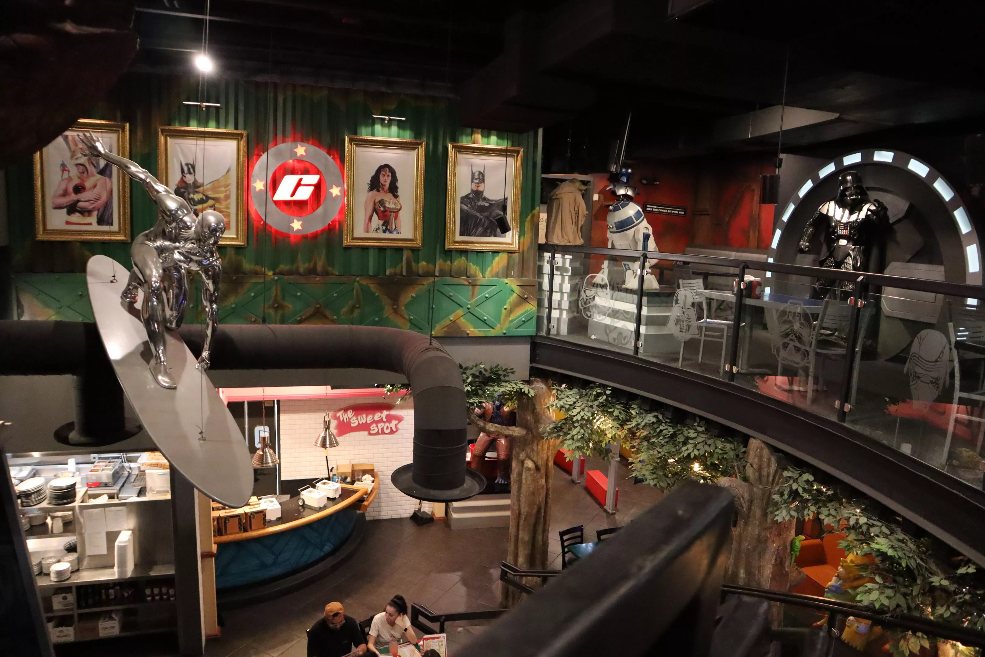 The 8,000-square-foot theme restaurant was renowned for its nerdy atmosphere, from its slogan (“Where superheroes grab a bite”) and its pop culture-inspired menu to its decor filled with life-sized statues of Thor, Darth Vader, The Incredible Hulk and numerous other iconic characters.
