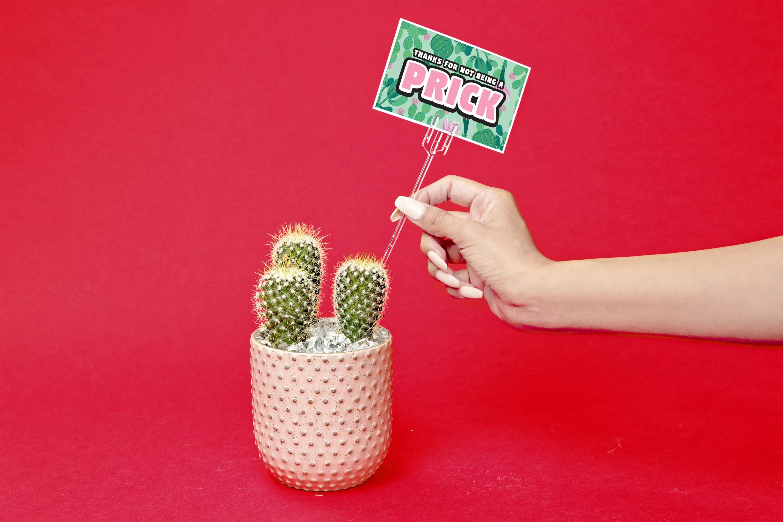 Almost as glamorous as the drag queens are the limited-edition flower arrangements they’ll be delivering. STEM SWAG AZ designed six arrangements for Valentine’s Day, each with a distinct theme. They range from a cactus with a sign that reads, “Thanks For Not Being a Prick,” to a bouquet of black roses with black cherry Dum-Dum suckers and a sign that says, “Valentine Sucks, You’re Cool Though.” Guerin says it was important to be inclusive to all types of loves when designing the arrangements.