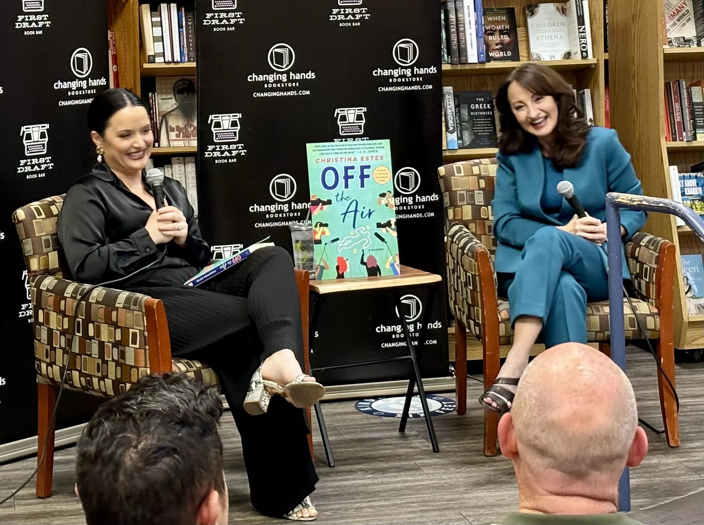 AZFamily weekend anchor Whitney Clark, who hosts the podcast “Beyond the Next Chapter,” speaks with author Christina Estes on March 26, 2024, at the launch of her first novel, “Off the Air.”