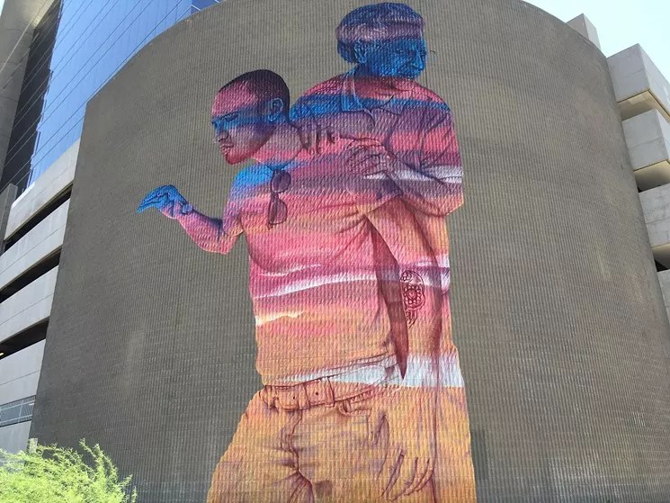 Painted along a wall on the Renaissance Phoenix Downtown Hotel, this is one of several Clyde murals around metro Phoenix that’s imbued with storytelling properties. The artist often features desert imagery and central figures that spark curiosity in viewers.
