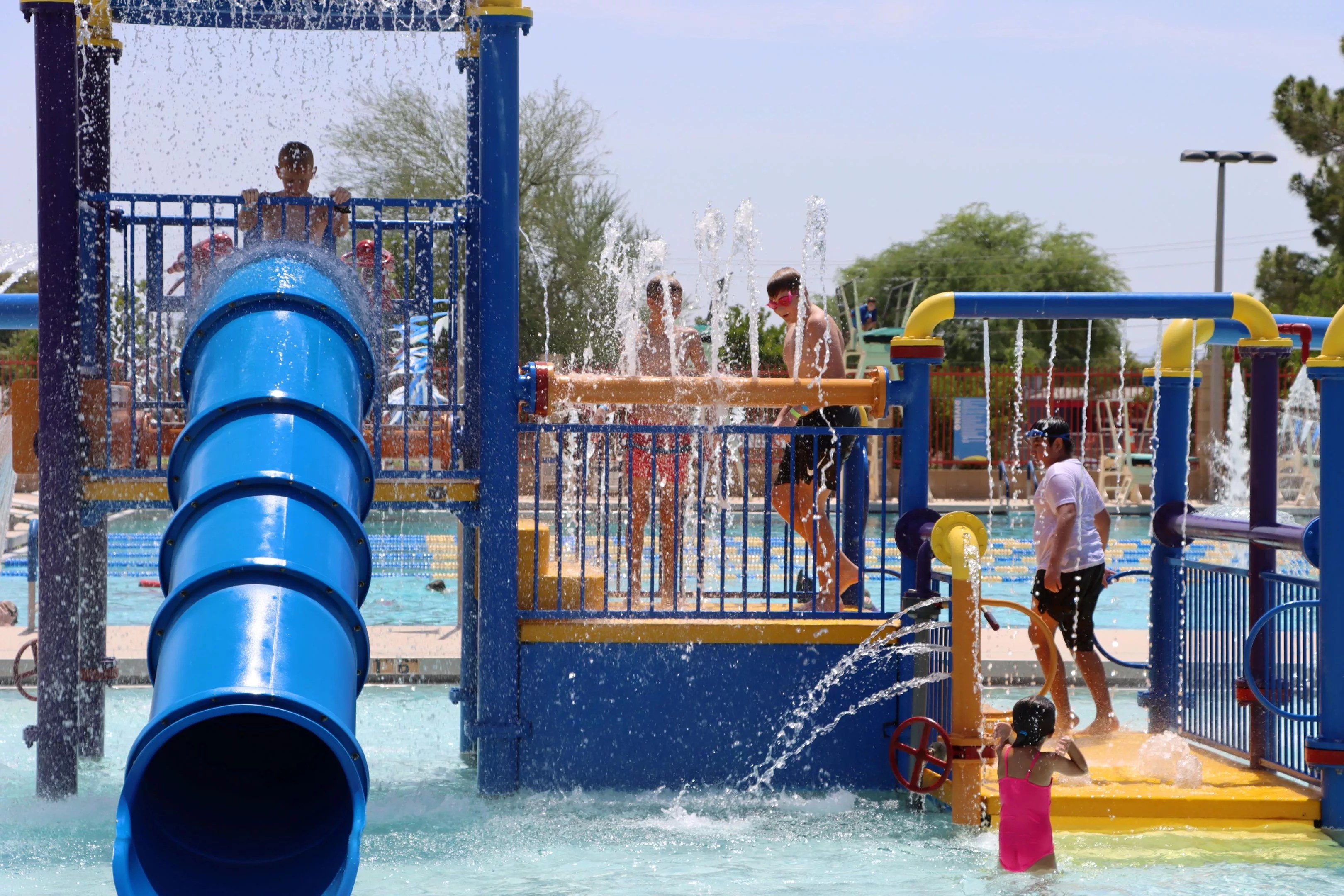 17010 S. 48th St.Pecos Park in South Phoenix may be best known for its pickleball courts, but its swimming pool also is worth checking out, especially if you live in or around Ahwatukee. The large outdoor facility includes two pools: a large lap pool that’s connected to a zero-depth-entry play pool, complete with spray features and dual figure-eight slides, and a separate diving pool with two diving boards. A splash pad and playground are located just outside the pool facility. Restrooms, showers and drinking fountains are available, but unlike at Cortez, there are no concessions and limited seating options. Swim lessons for children and adults are offered.
