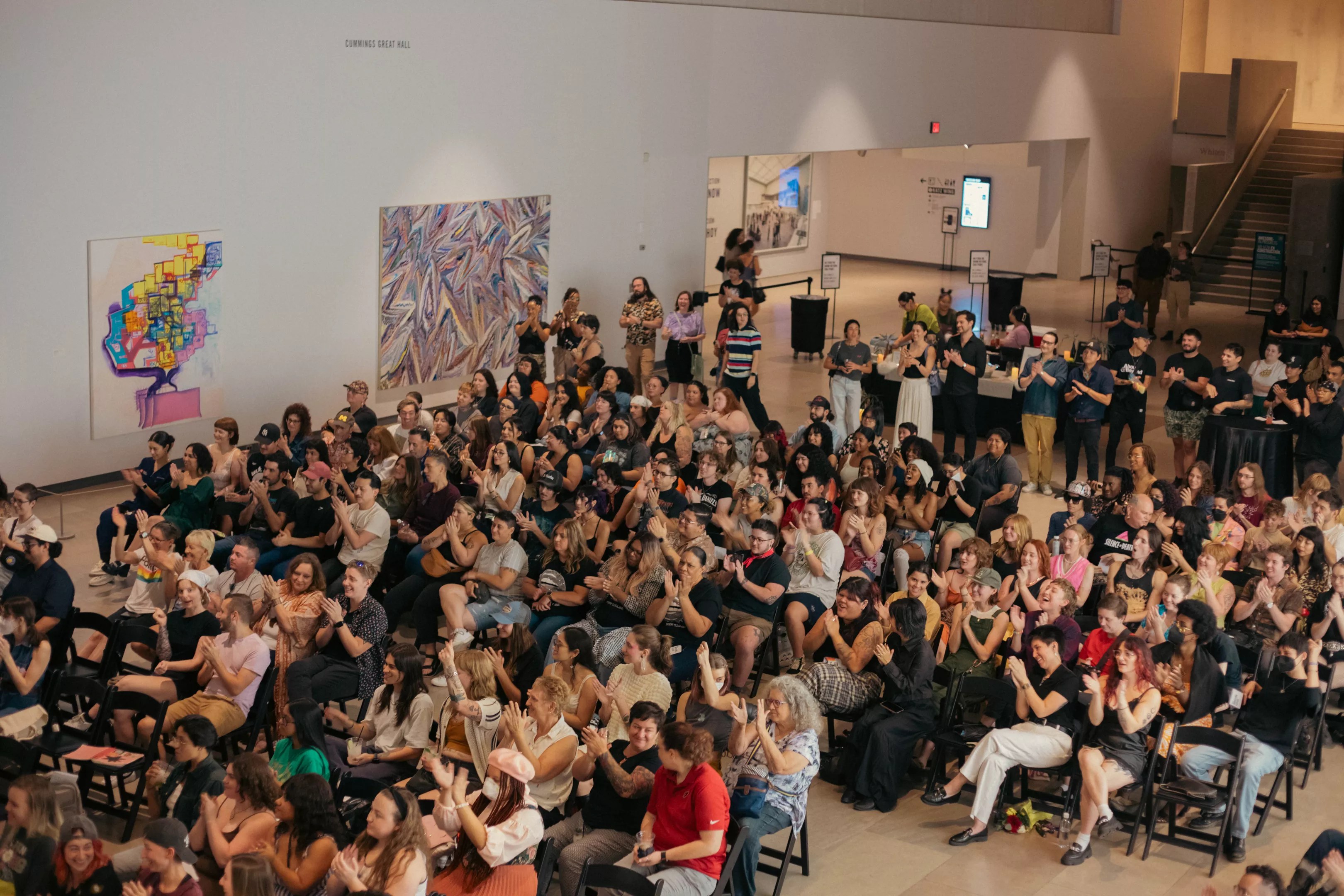 Community members attend a thems poetry event at Phoenix Art Museum.