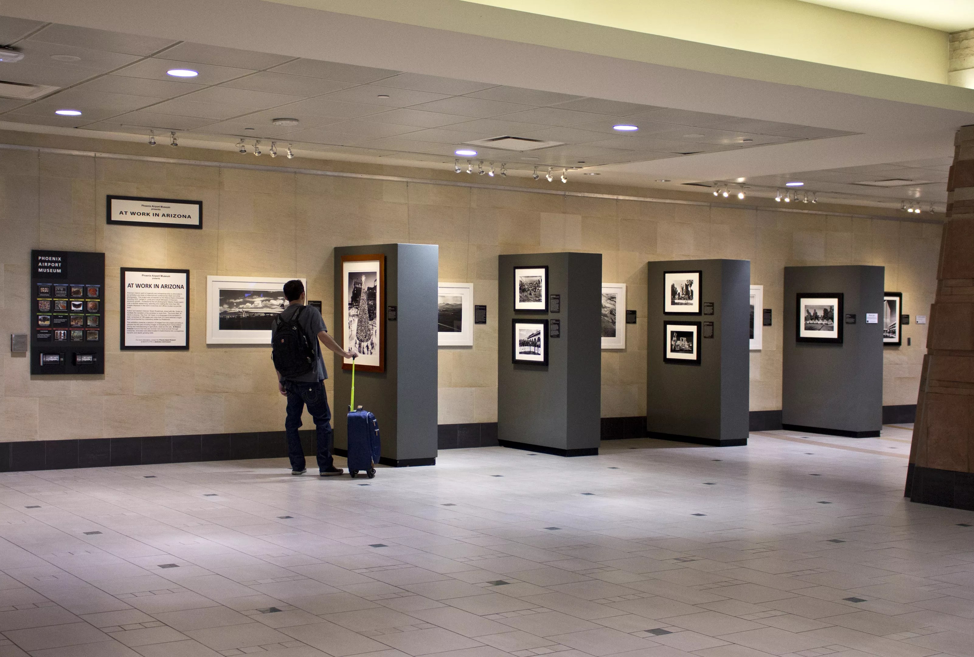 Head to the center of the terminal, near the food court, to explore “At Work in Arizona.” The exhibition includes photographs from Arizona’s first 100 years, curated by fine art photographer Marilyn Szabo. The images explore several sectors of the Arizona economy, such as mining, transportation, agriculture, the arts, and retail sales. It continues through April 1, 2018.