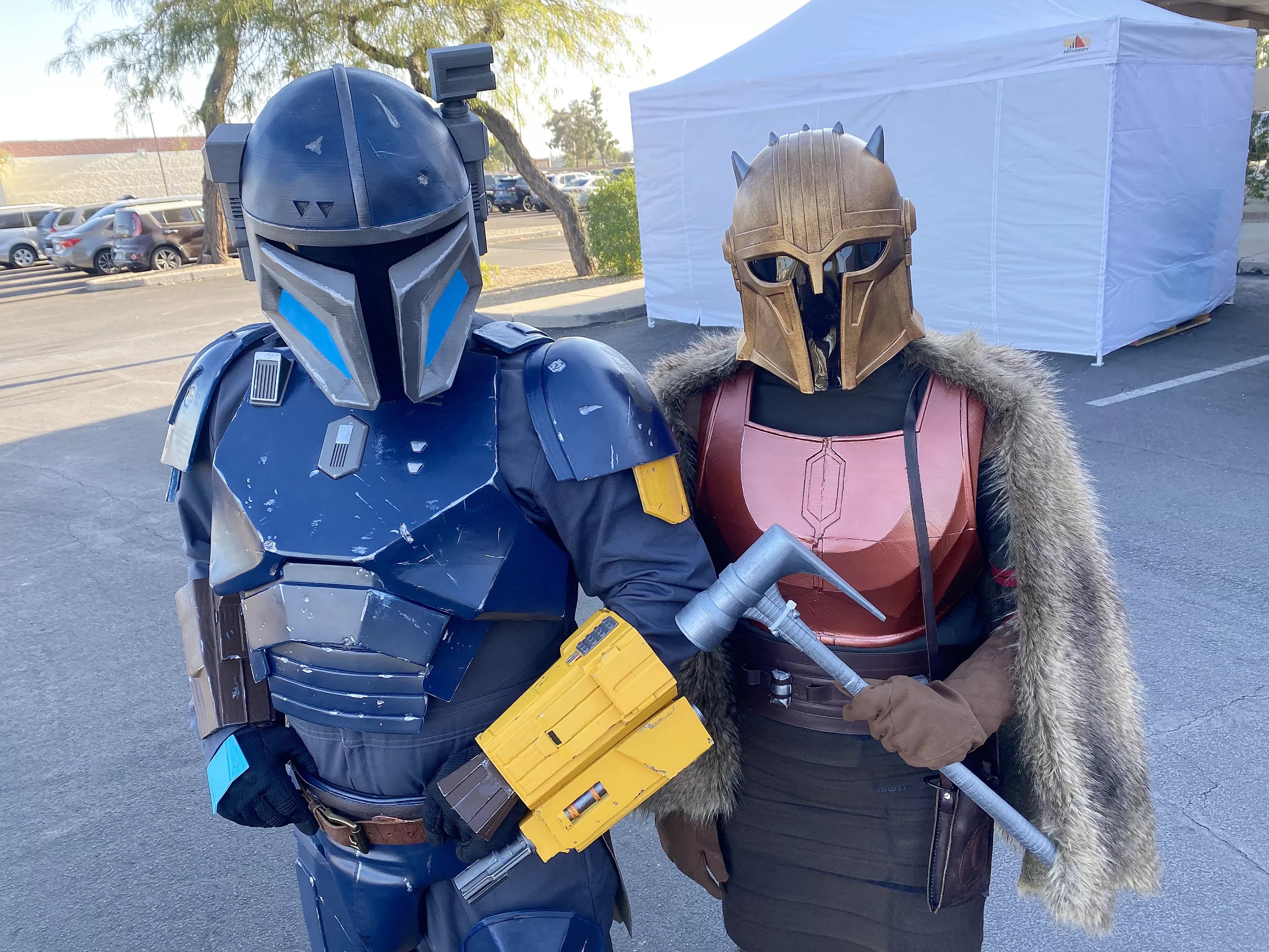 Excellent cosplays of Paz Vizsla, left, and The Armorer, right, from “The Mandalorian.” This is the way.