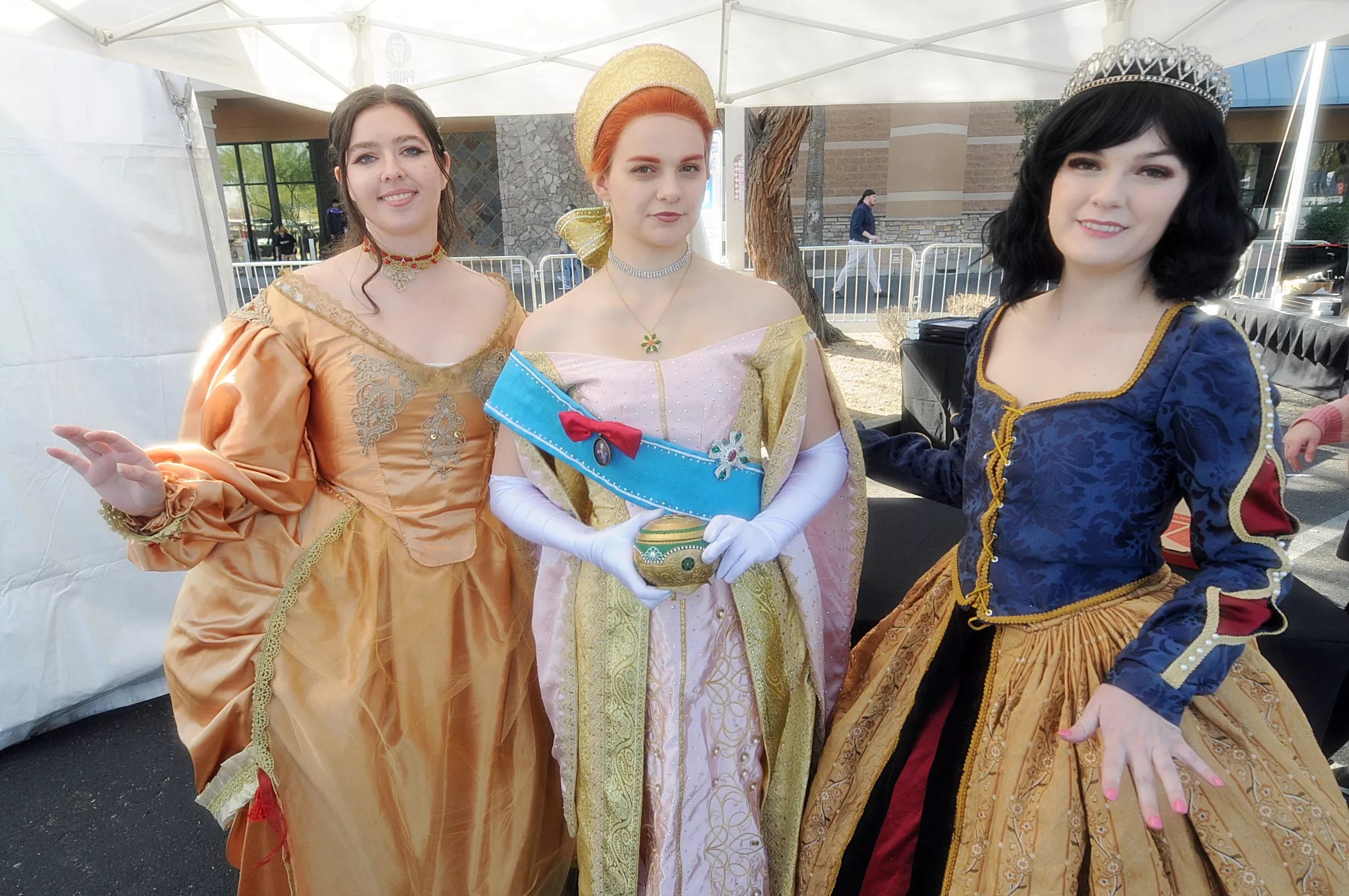 Abbaliese Livingston of Goodyear, left, as Belle from “Beauty and the Beast,” Starlit Memory Cosplay of Prescott, center, as Anastasia and Autumn Dayss of Phoenix as Snow White.