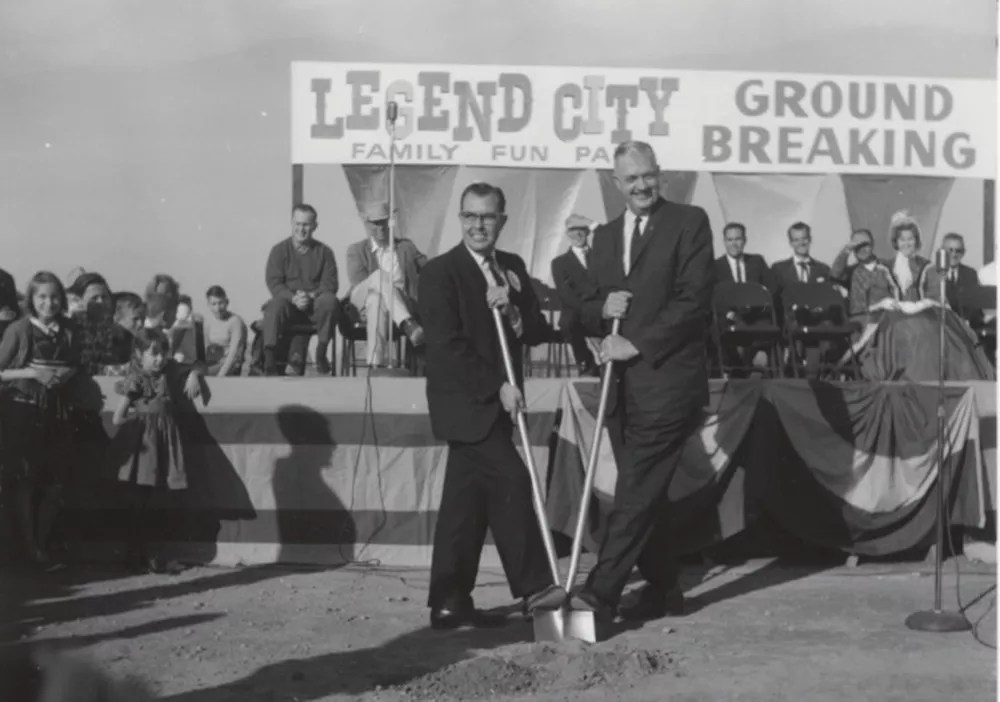 The groundbreaking ceremony for Legend City in 1961. The park’s founder, the late Louis Crandall, is on the left.