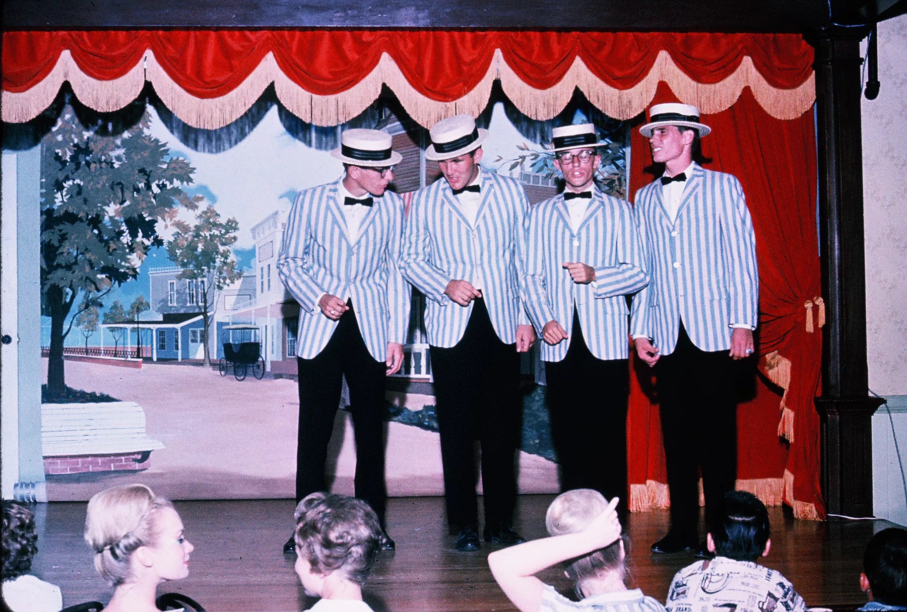 A performance by barbershop quarter The Coppertones at Legend City in the 1960s.