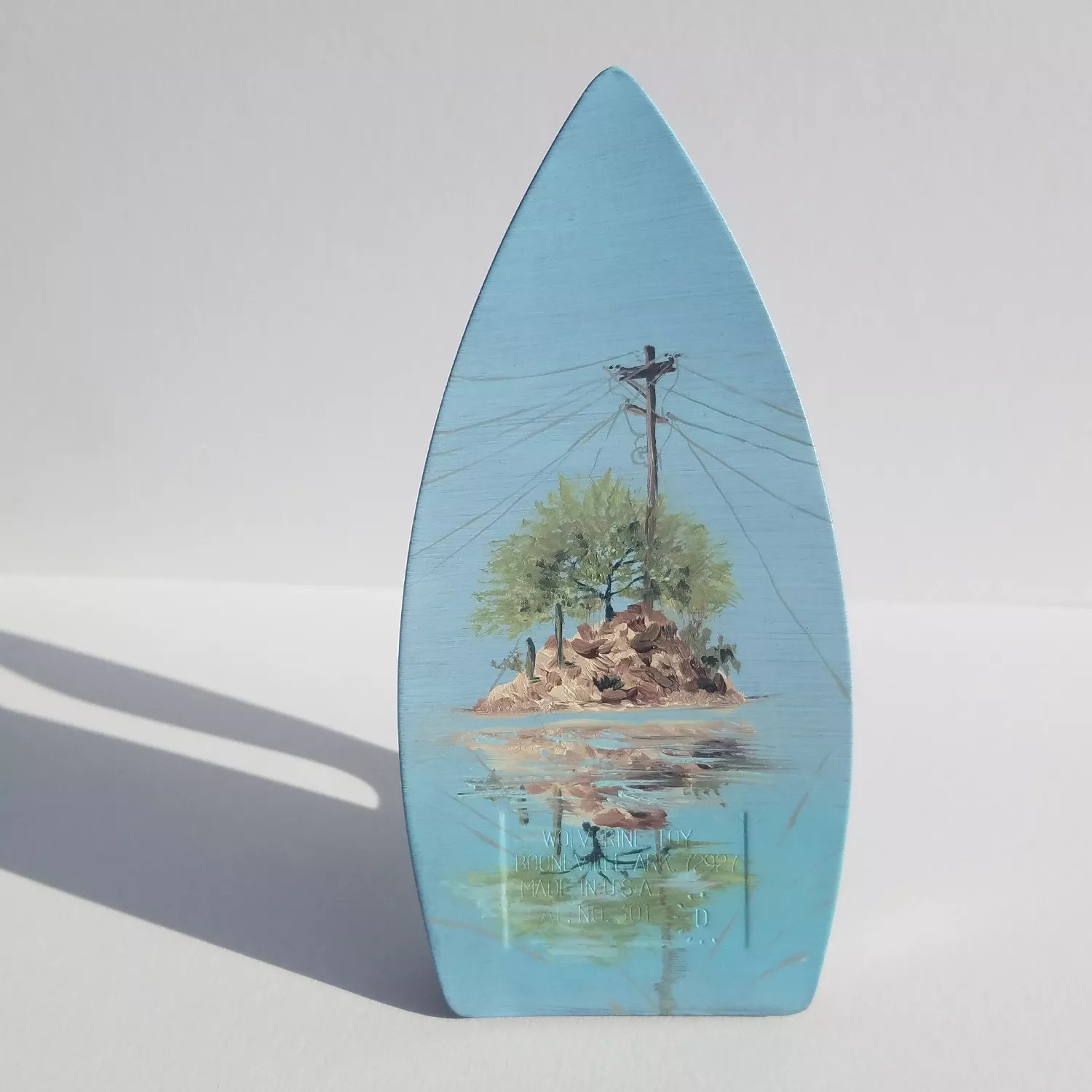 For years, Phoenix-based artist Laura Spalding Best has been exploring the fine line between reality and perception, primarily through oil paintings on found objects. But her work holds even richer meaning now, during the age of so-called “fake news.” She’s created a whole new body of work, comprising paintings on domestic objects such as