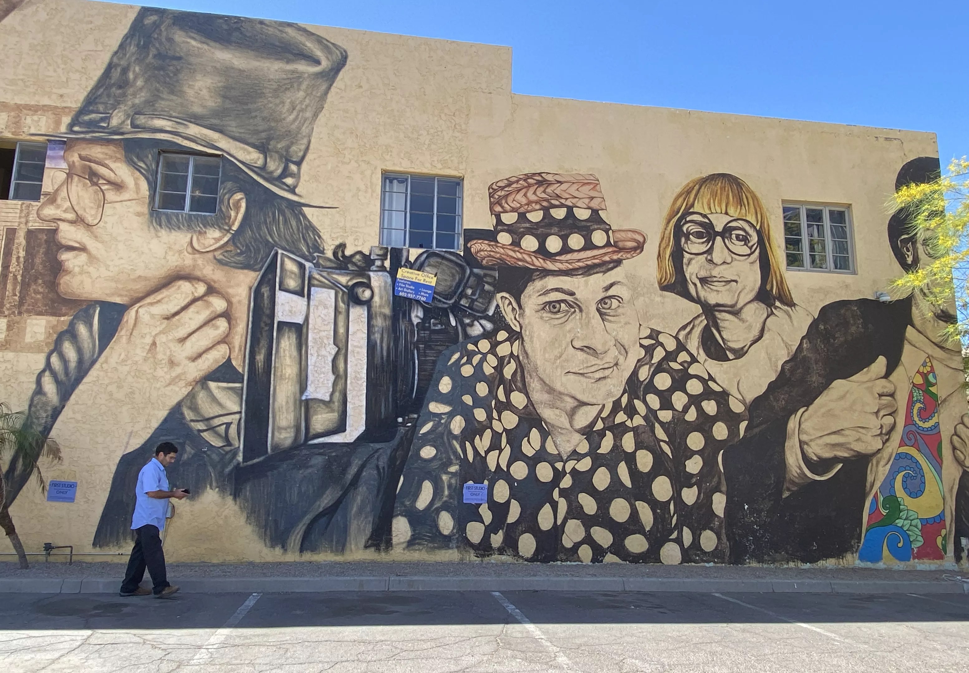The Wallace and Ladmo mural created by Phoenix artists Nomas, Casebeer and Jenny Ignaszewski adorning the exterior of First Studio.