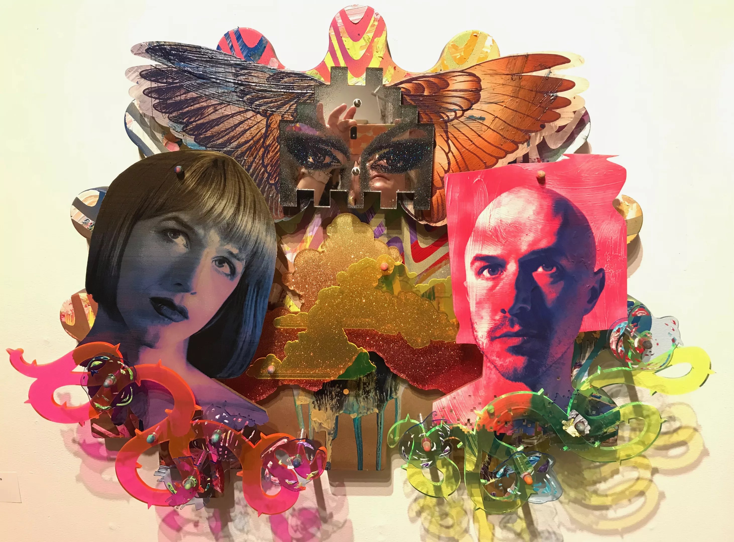 Daniel Funkhouser used a pair of photographic self-portraits to create his piece for this year’s exhibit, titled travelling_through_space_because_i_don’t_have_a_body_i’m_a_computer.exe. Funkhouser etched the images into acrylic paint, then coupled them with laser cut acrylic designs, creating a piece that imagines a digital version of the artist traveling through space.