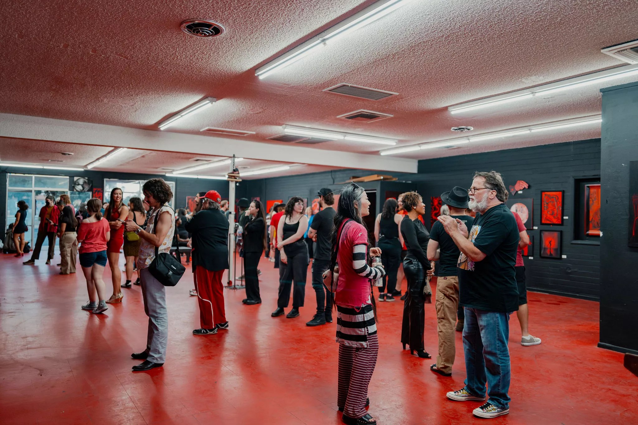 A pair of art shows on Friday, April 25, drew hundreds to Danelle Plaza in Tempe. In the Red Floor Gallery, “Black and Red” fittingly featured black and red works by 80 local artists in a show co-curated by Matt Dickson, Luster Kaboom and Seth Manic Tongue.