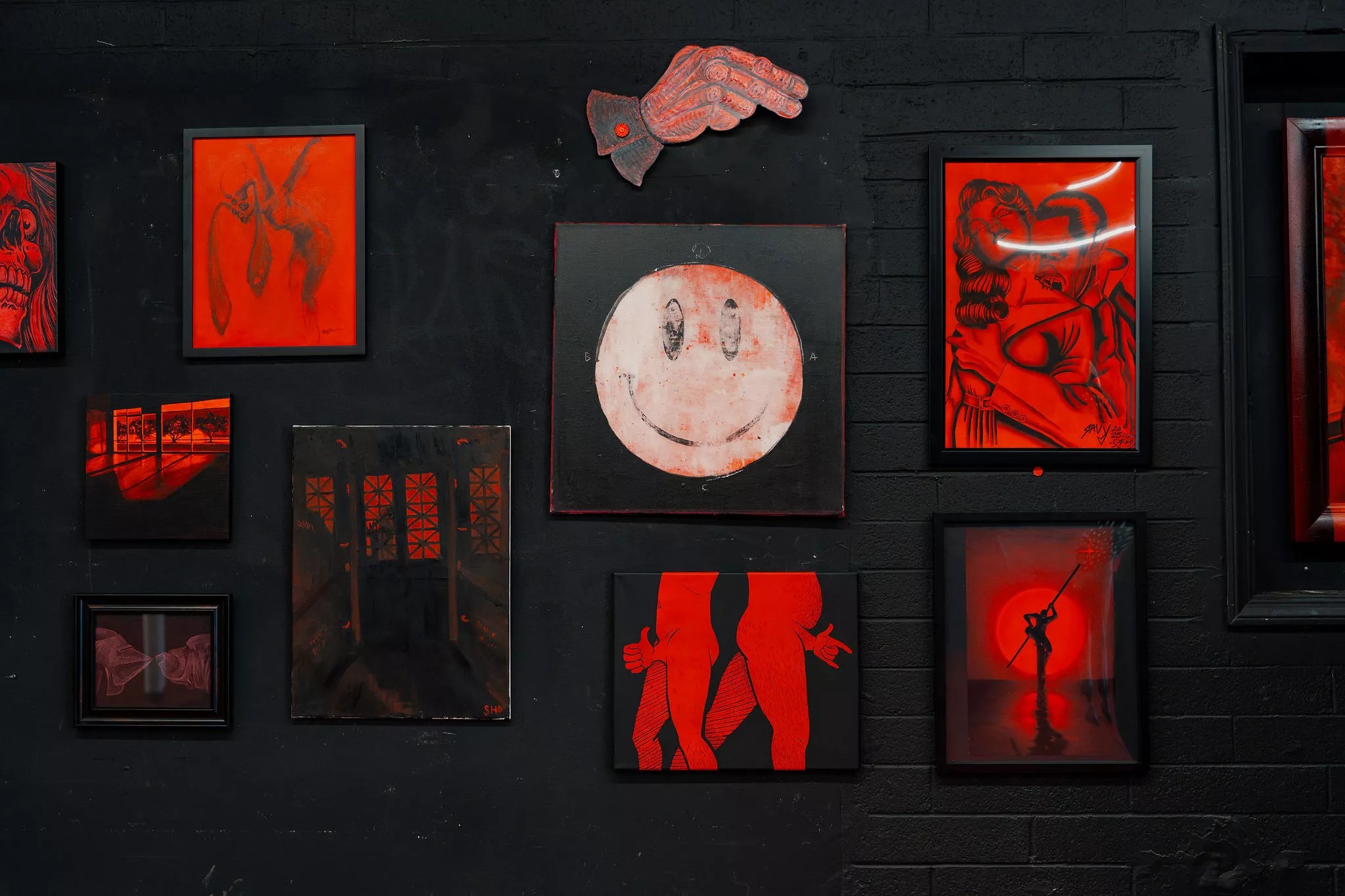All the works in the “Black and Red” show had the same color scheme.