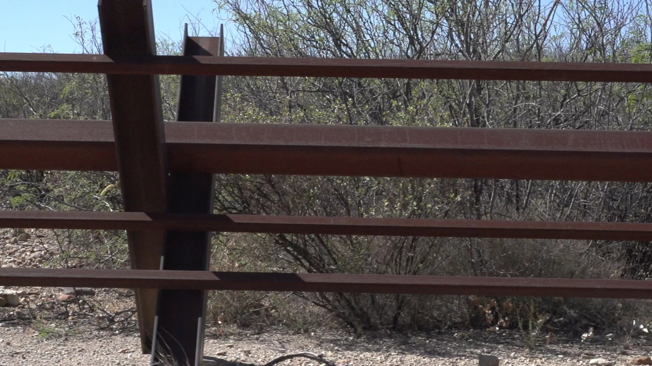 Viewers see three variations of border fences, along with surrounding neighborhoods and landscapes. But the images travel past them at varying speeds, prompting a disorienting feeling. It’s heightened by a discordant soundtrack, created by Postcommodity using hacked instruments and other objects.