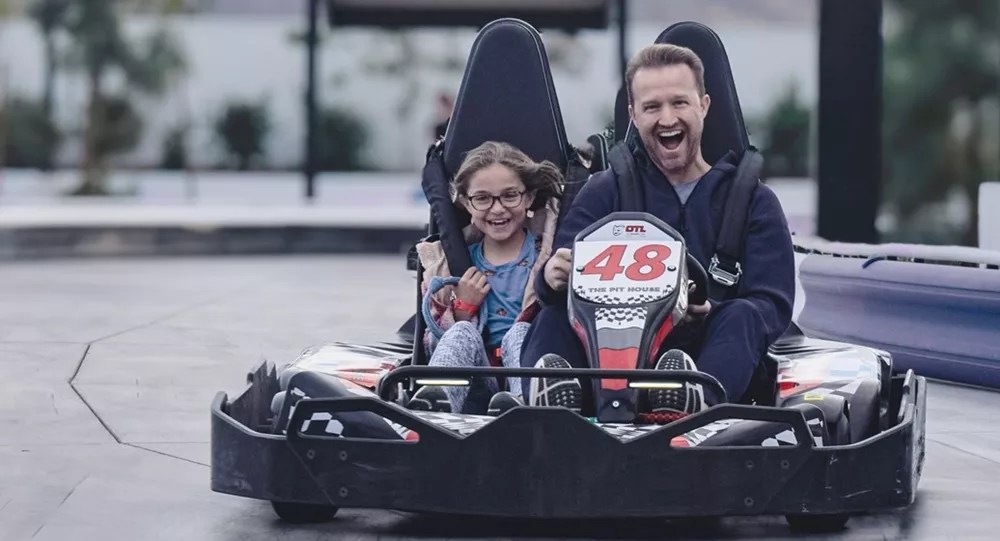 Riding the go-karts at Pecan Lake in Queen Creek.