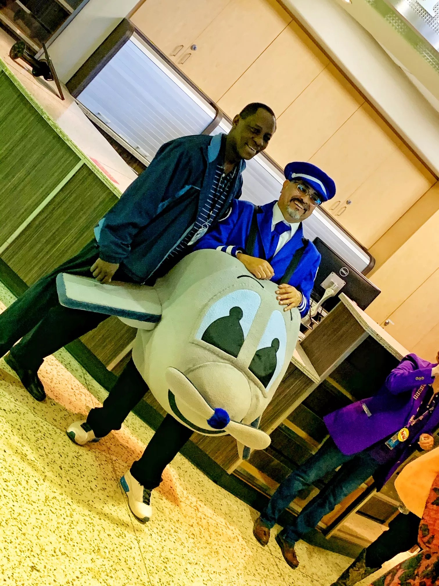 Benny said he worked for the city of Phoenix. “This is the city’s property,” he said of both Terminal Two and the foam-rubber airplane. “We also have one of these costumes that represents Amelia Earhart. We wear them to represent the airport at the Fiesta Bowl parade every year. We march with the big inflatable airplanes.”