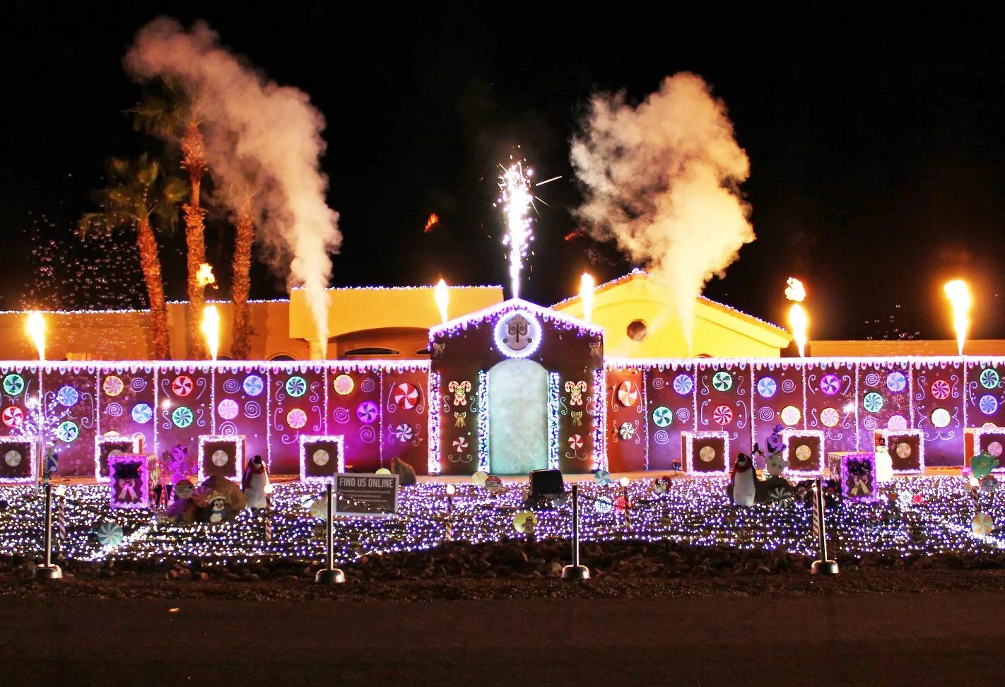 By 2020, it had become known as Christmas Forever and resembled a sprawling gingerbread house that spanned the entire five-bedroom home. It was big on spectacle and equipped with bedazzled wooden candy cutouts, 250,000 lights, bubble machines, video projections, and showstopping effects like CO2 jets and pyrotechnics.