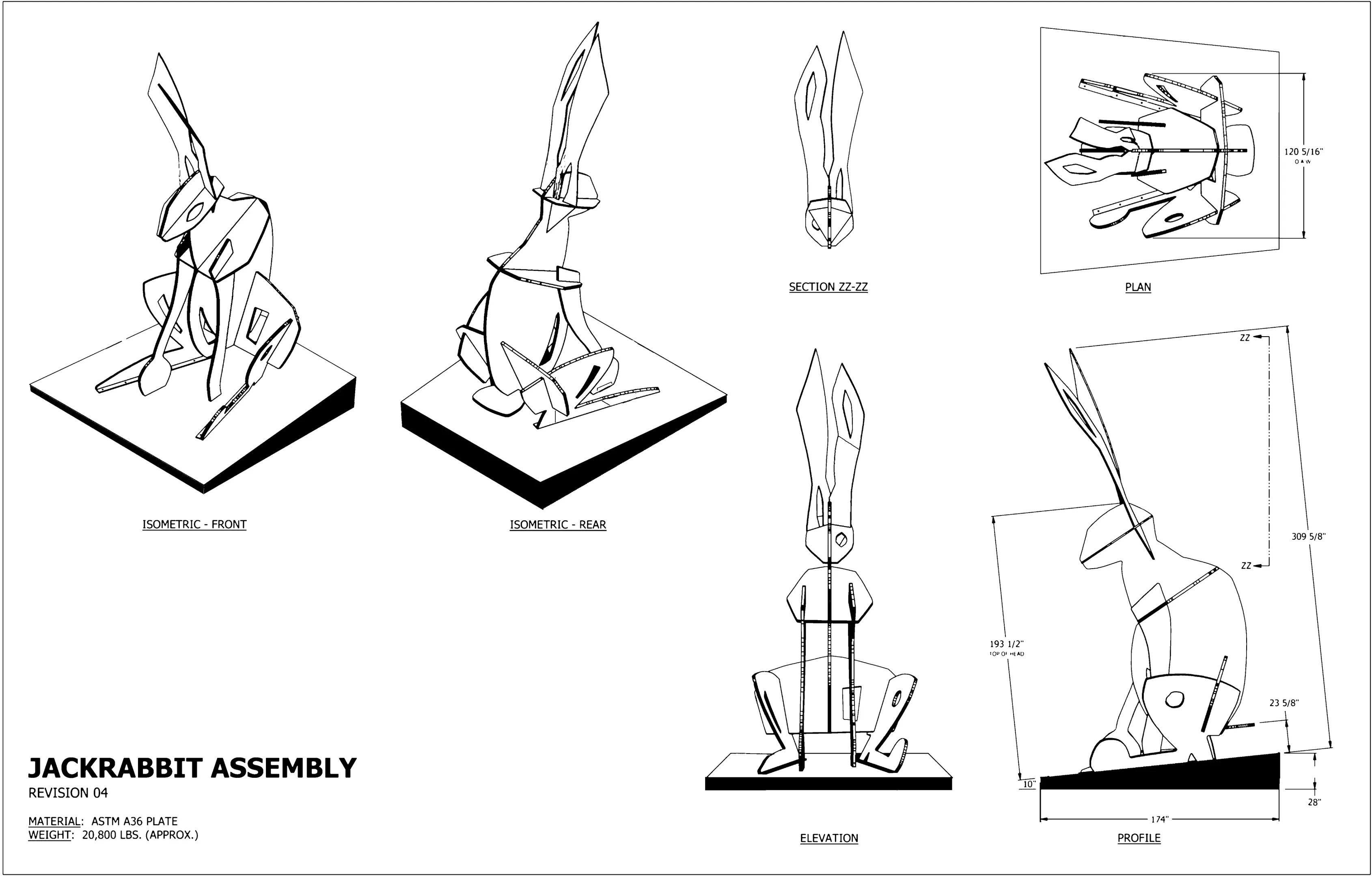 Nelson was paid $10,000 for his design, which comprises a white, 26-foot-tall jackrabbit set atop a forward-sloping base.