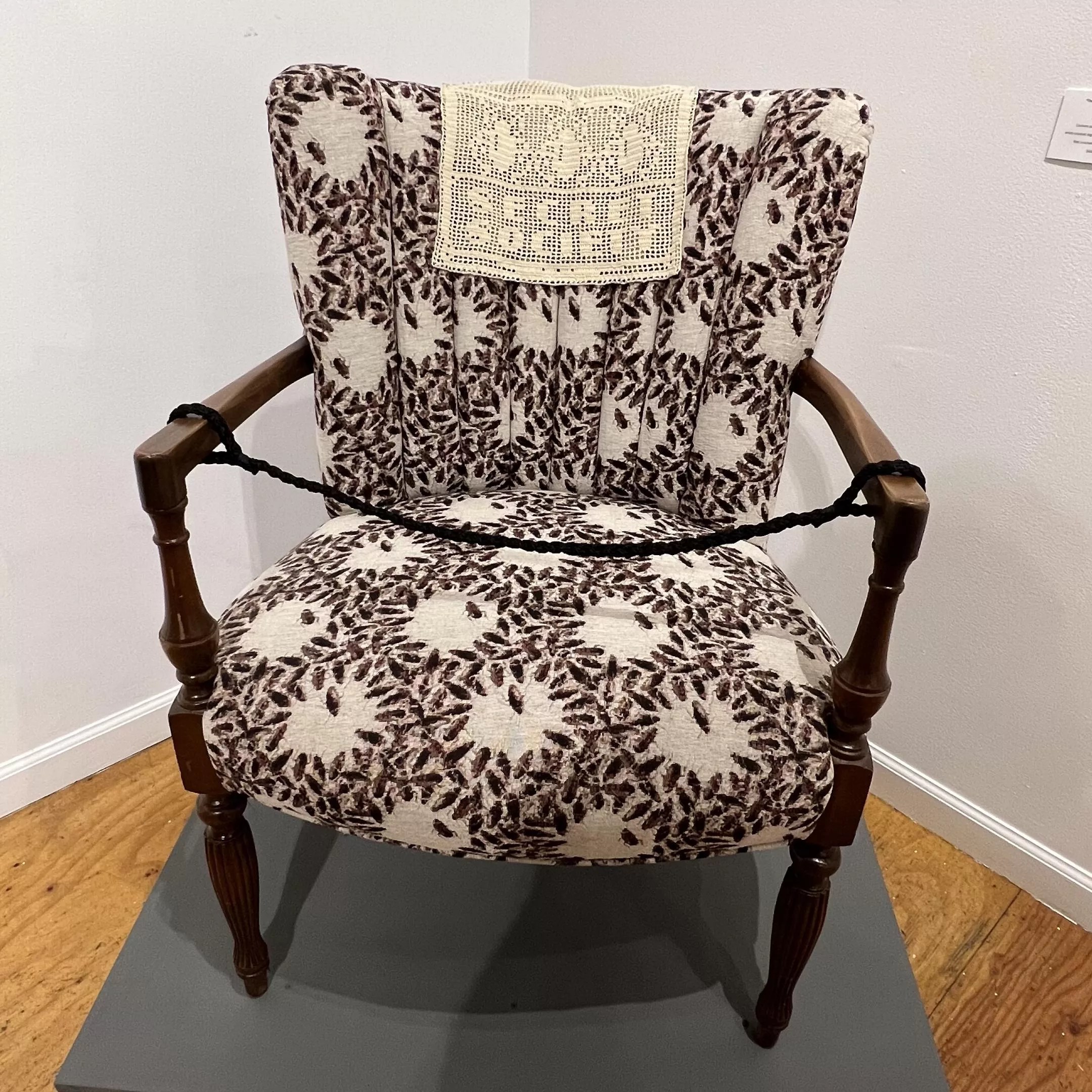 “Secret Society” by Ann Morton, part of “Modified Arts: A 25th Anniversary Group Invitational.” Note the cockroach pattern on the upholstery.