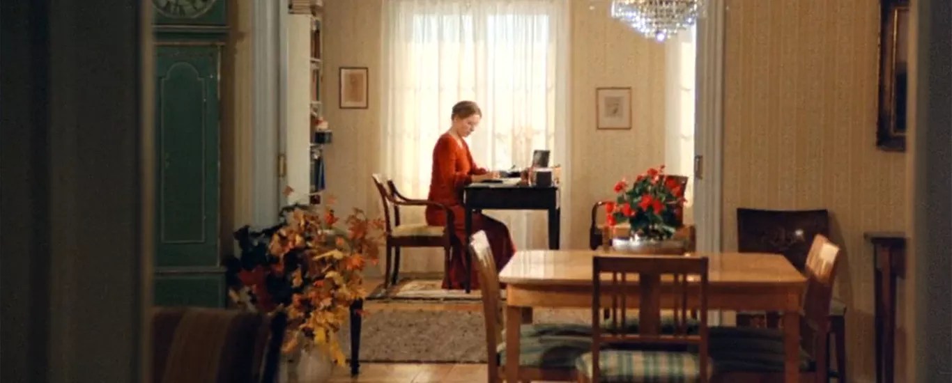 Autumn Sonata also has a distinct autumnal look, thanks to the efforts of Nykvist. Using candles, lamps, and other artificial light sources, Nykvist gives Autumn Sonata a faded, washed-out look. Flowers also appear throughout the film, offering a splash of color in the gray and tan rooms that much of the action takes place in. The spectre of winter is never far from the picture: Coldness, both literal and emotional, threatens to blow into the frame at any moment.