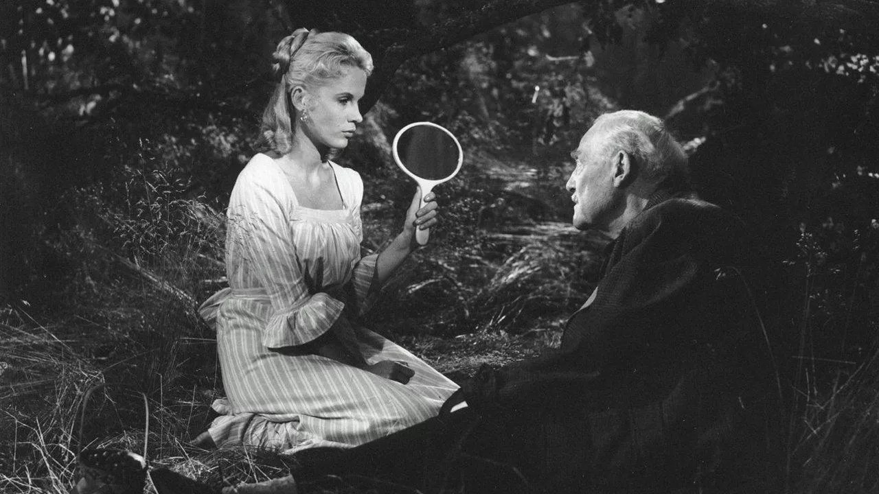 The lighter side of Bergman can be seen throughout his 1955 romantic farce Smiles of a Summer Night. The story of a group of couples who swap partners and solve their romantic problems over the course of Midsummer Night (the shortest night of the year), Smiles of a Summer Night is Bergman taking a playful approach to romance and infidelity. Extramarital affairs, romantic angst, and the futility of monogamy (at least for Bergman’s characters) are recurring topics throughout his work, but they’re treated lightly here. Bergman doesn’t try to pretend that the characters in Smiles aren’t doomed to break up, cheat on each other, and be miserable after the credits roll, but he lets them frolic and have fun in the moment. Even a climatic game of Russian roulette is essentially played for laughs.
