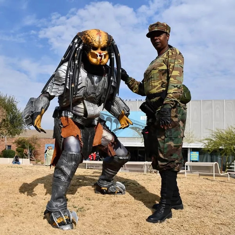 Ronin Kasai of Phoenix, left, as a Yautja from the “Predator” series with girlfriend Theresa Edwards, right.