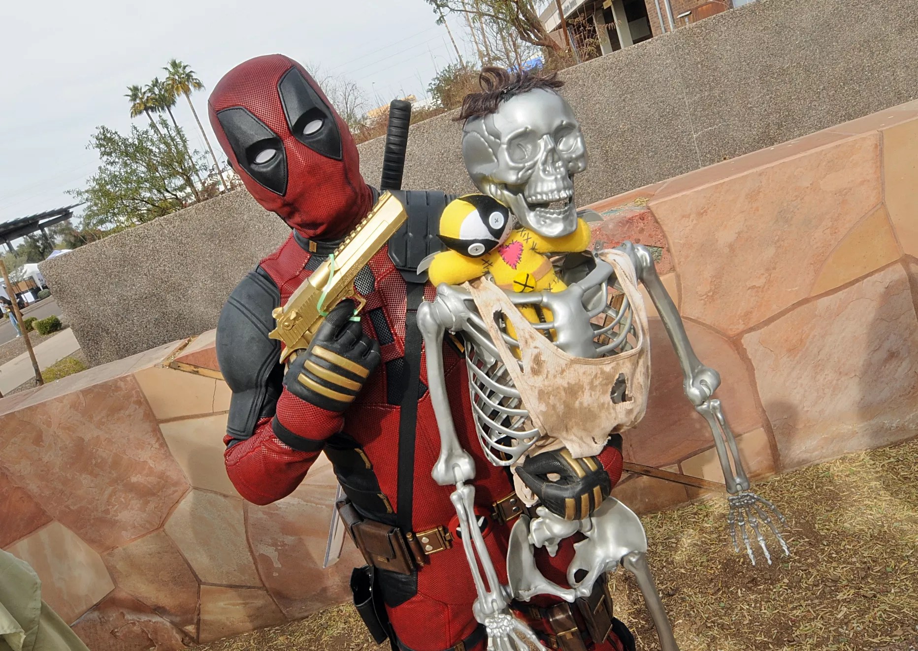 Cosplaying the scene from “Deadpool & Wolverine” with Logan’s skeleton — like dpool_80 of Mesa did at Tempe FanCon — is all kinds of wrong.