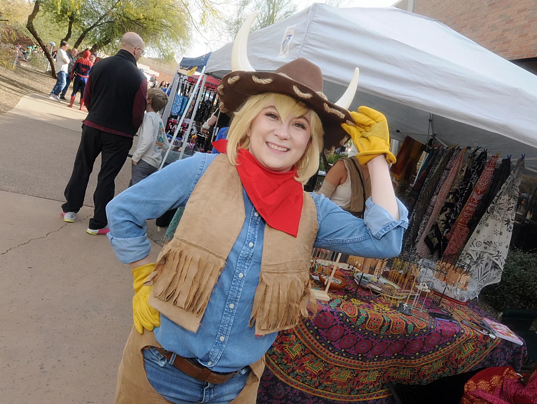 Local artist and cosplayer CalistieArtz of Mesa came to Tempe FanCon as Cowgirl Peach from the Nintendo video game “Princess Peach: Showtime!”