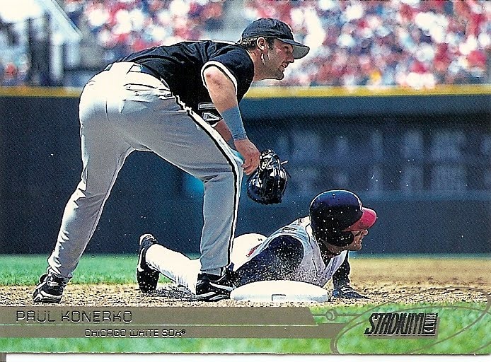 The shot from this Chicago White Sox player’s 2003 baseball card says it all.
