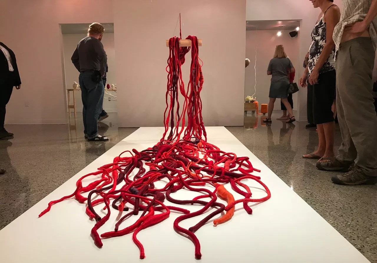 Typically, people think of “hanging by a thread” as a bad thing. But the phrase gets a new twist in the “Threaded” exhibit that opened this month inside the art gallery at Mesa Community College, 1833 West Southern Avenue in Mesa. The free exhibit includes works by 34 contemporary artists working in the eclectic, evolving field of fibers, including several based here in metro Phoenix.