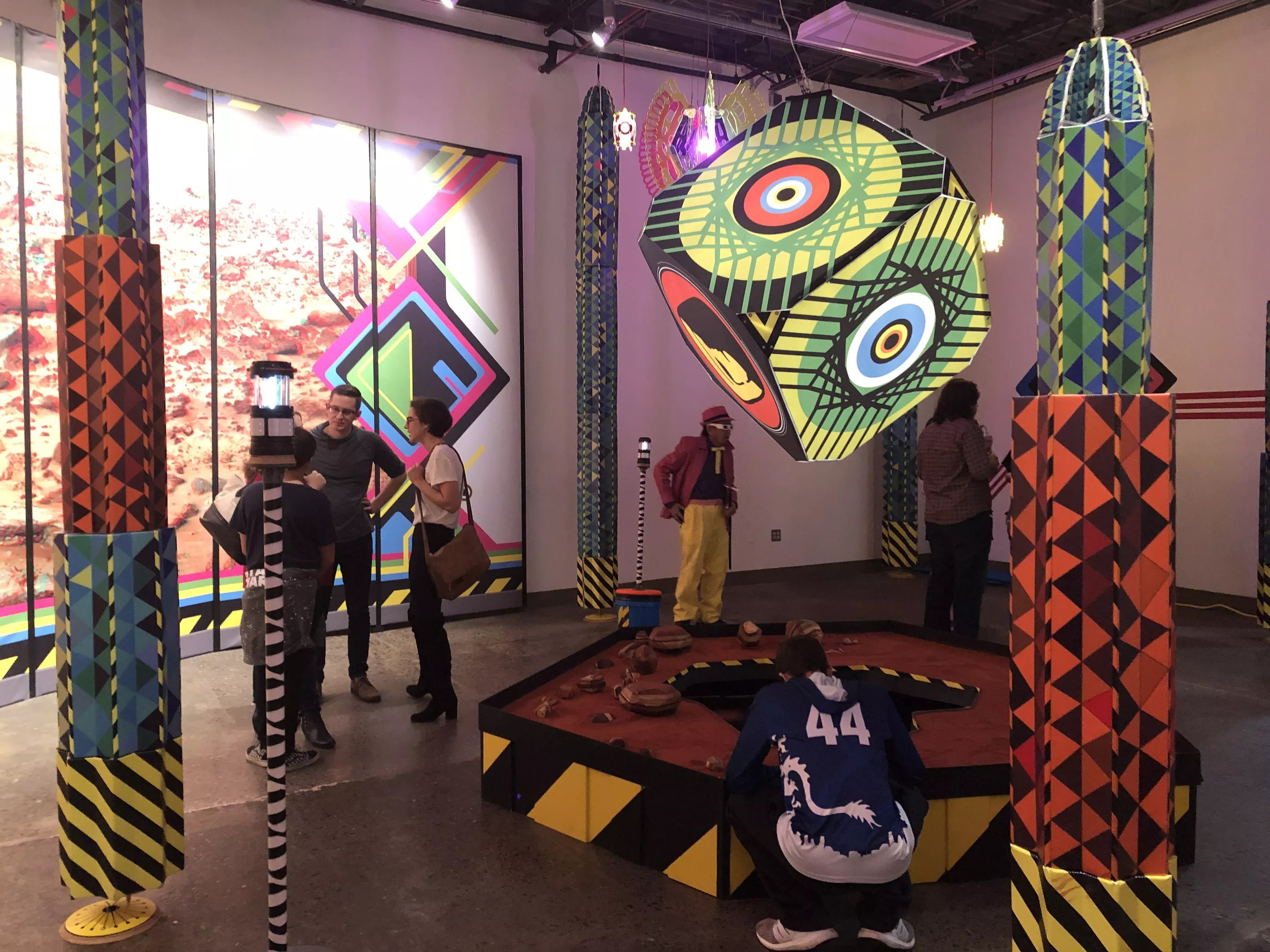 There were some extraterrestrial elements, like a pit with deep red sand and strange space rocks of different weights and sizes. The colors and patterns pop with the bright, window-like print of the Mars terrain, but the scene transforms into something straight out of a King Gizzard and the Lizard Wizard video. Developed by Roy Wasson Valle, this project is a part of ASU’s Interplanetary Initiative under the Pilot II project: The Five Senses in Space and the Master of Fine Arts in sculpture program. Sara Edwards