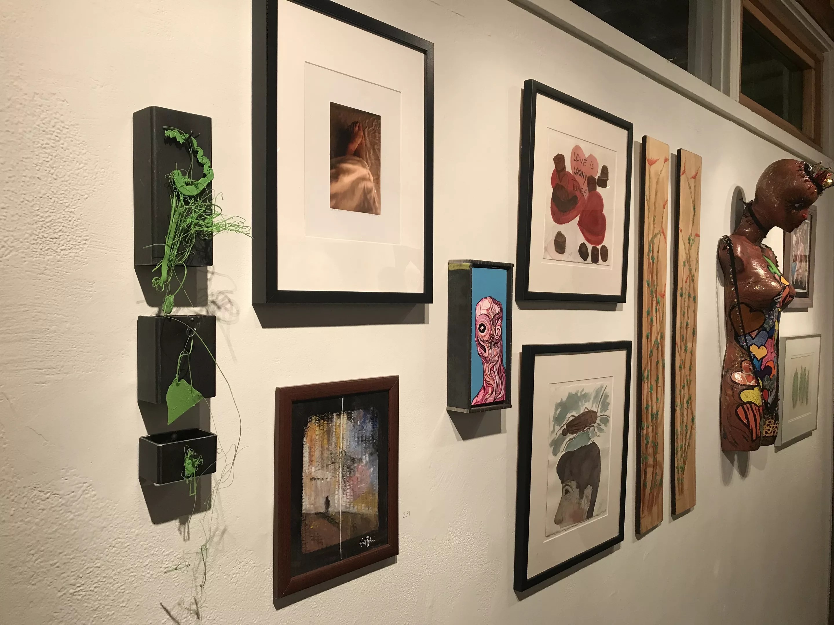 For this seventh annual art show held at The Hive art gallery in the Coronado neighborhood of Phoenix, about two dozen creatives showed diverse artworks, including a lamp made with reclaimed redwood and a pair of Raku hearts.