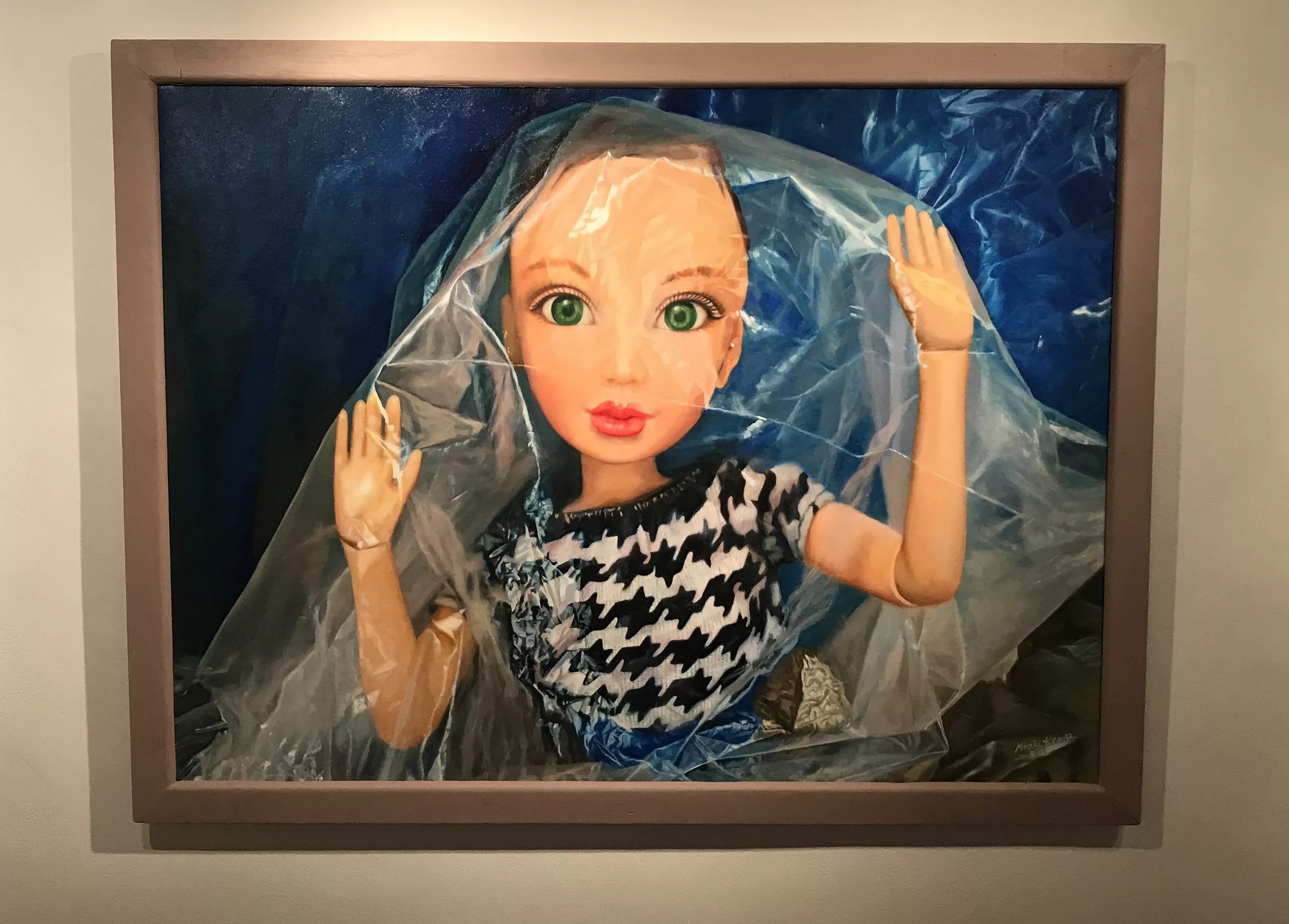 Exhibition highlights included a new work by Maggie Keane, an artist best known to many for her massive Prince mural located just off Grand Avenue. Cellophane Girl, which features a Barbie-like doll wrapped in cellophane, harks back to a similar piece called Wrapture stolen five years ago from the same gallery space.