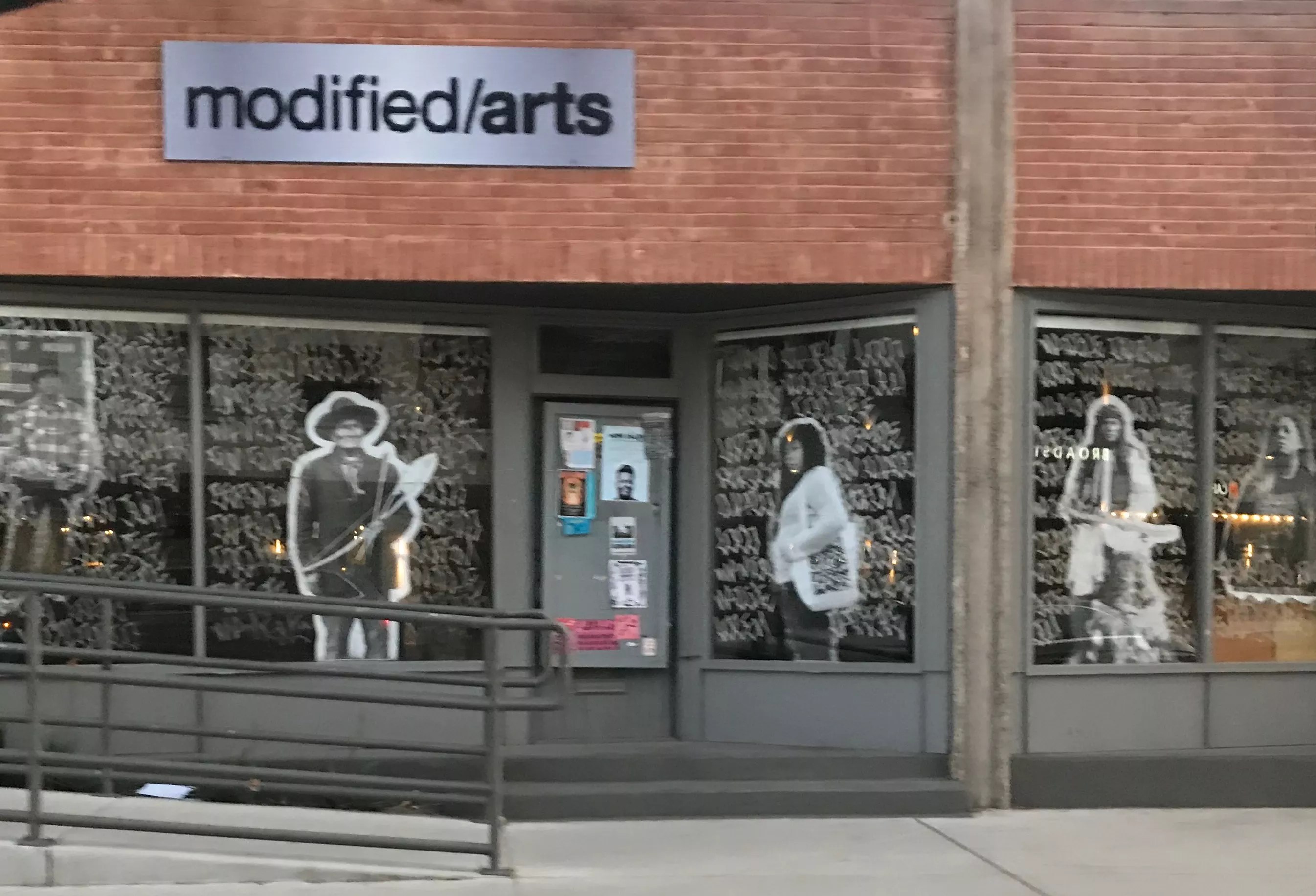 Figures of historical and contemporary Native Americans looked out over a strip of Roosevelt Street from March 15 to April 13, as if surveying both changes wrought by a long history of colonization and more recent developments assailed as gentrification. Douglas Miles created the mixed-media installation across the gallery windows at Modified Arts using text, including the names of Chiricahua Apache leaders, images of his family members, and the Apache leader Geronimo. Miles’ installation was part of his “Everyday Sacred” exhibit, which featured photos of everyday life that were meant to counter the objectification and marginalization of Native people both present and past.