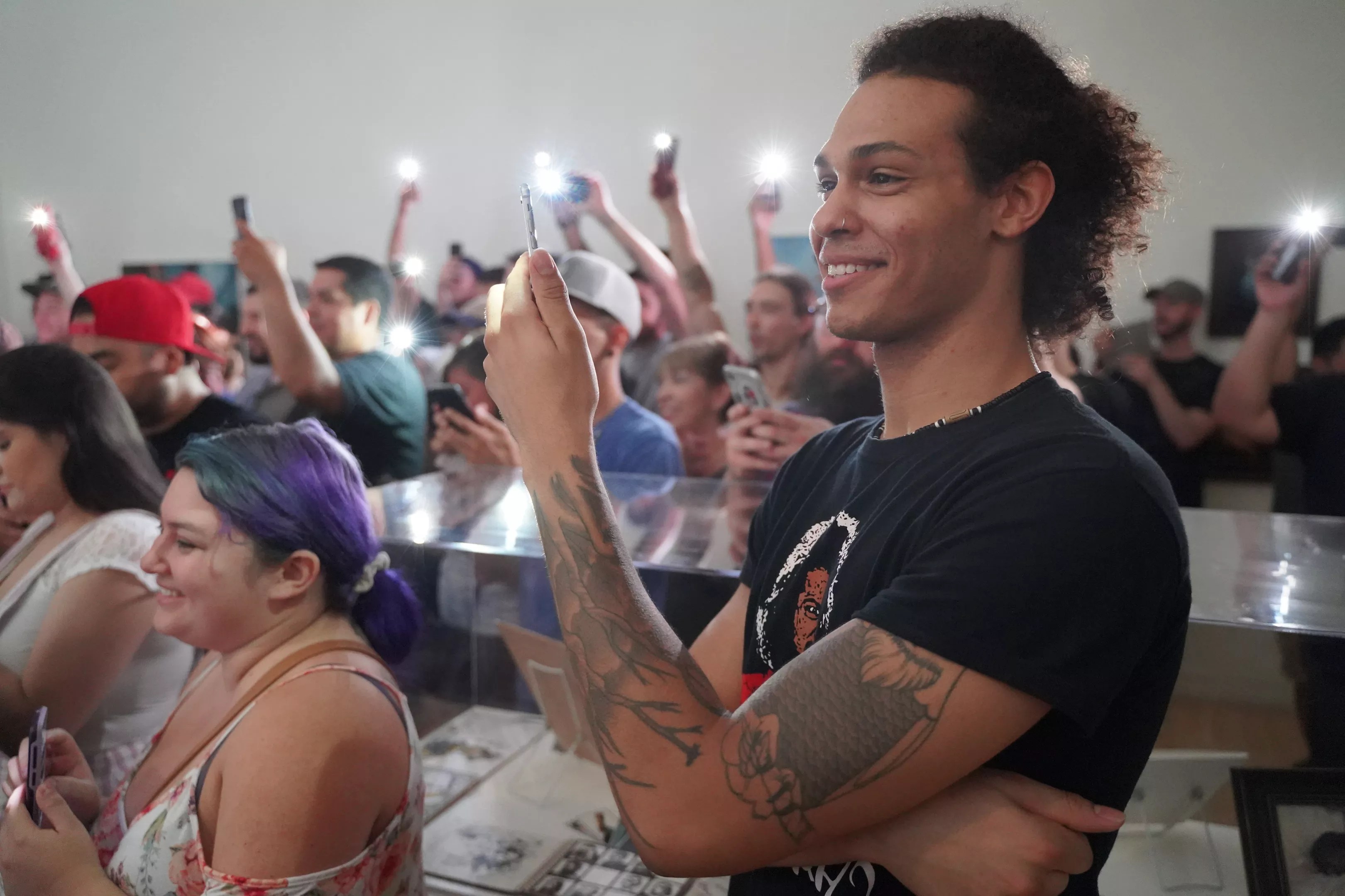A gallery space inside Mesa Contemporary Arts Museum was transformed into a casual concert venue on July 27. That’s when Circa Survive, a Philadelphia rock band fronted by Anthony Green, gave a free pop-up concert while on their way to perform a full set at the Disrupt Festival. The gallery hummed with excited fans, who’d also come to see a solo exhibition featuring Esao Andrews, the Los Angeles artist with Mesa roots who does album art for the group. The gallery lost power as the performance was getting underway, but the band played on as fans bathed the musicians in light from their cellphones. The event highlighted collaboration across artistic disciplines and the ways museums are adapting to shifts in how people want to experience music and art.