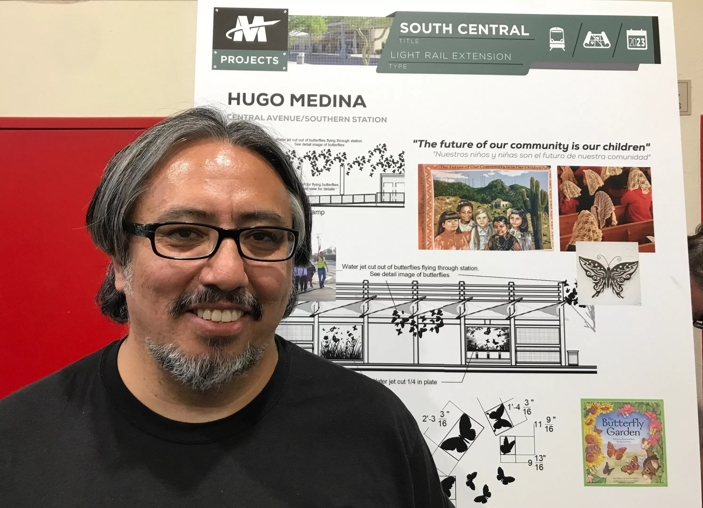 Another Phoenix artist, Hugo Medina, is designing the station art for Central and Southern avenues. He’s well-known for murals around downtown Phoenix, including the image of a distraught artist painted last year at Modified Arts during a time of rampant development in the Roosevelt Row arts district.
