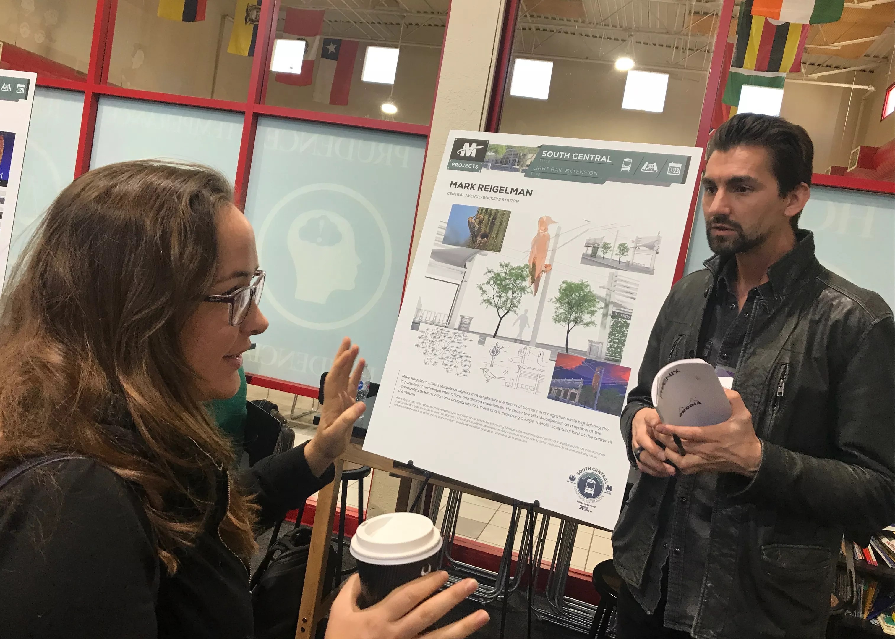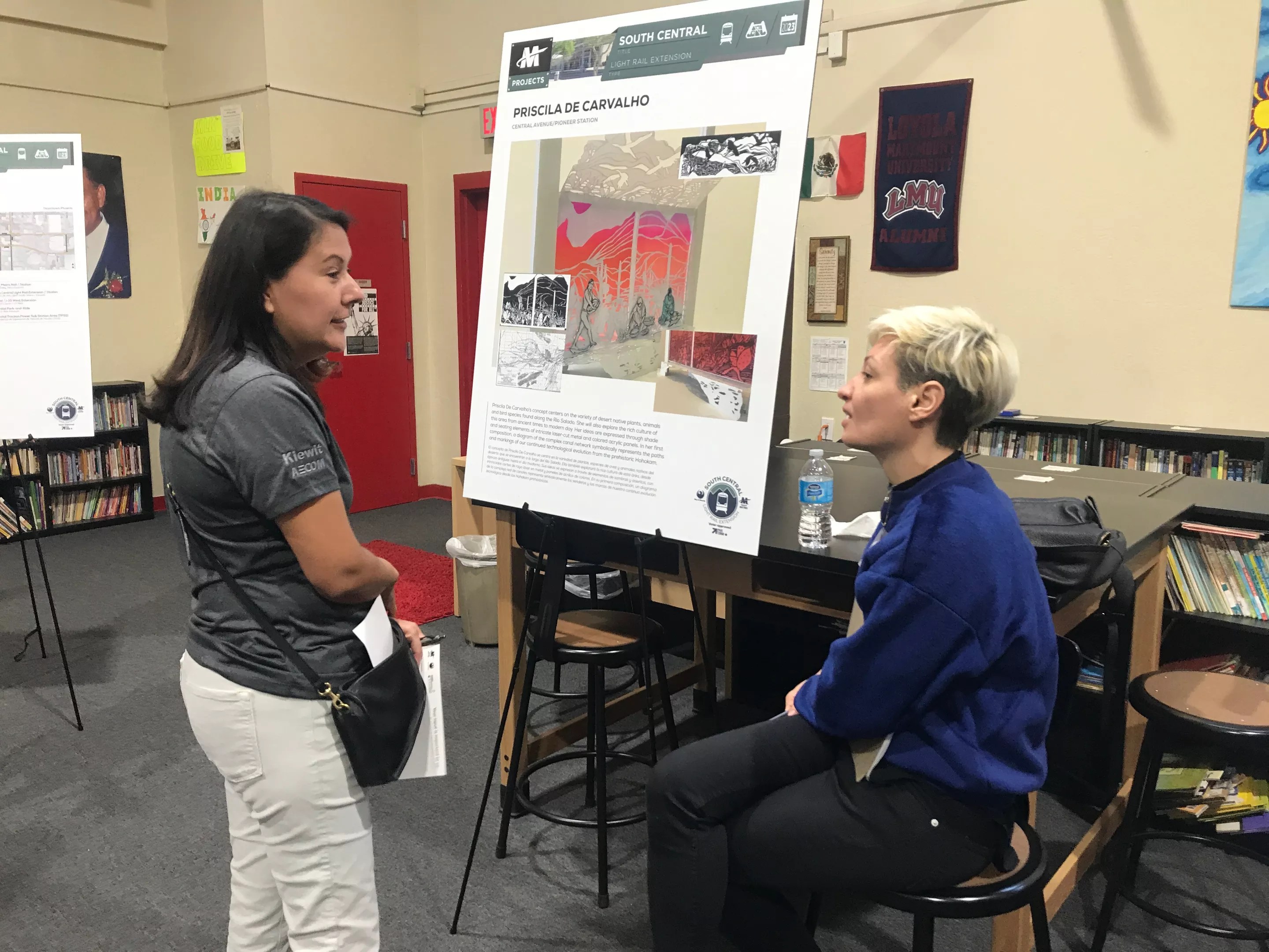 Priscila De Carvalho of New York City (right) talks about her early design for the south Phoenix light-rail line.