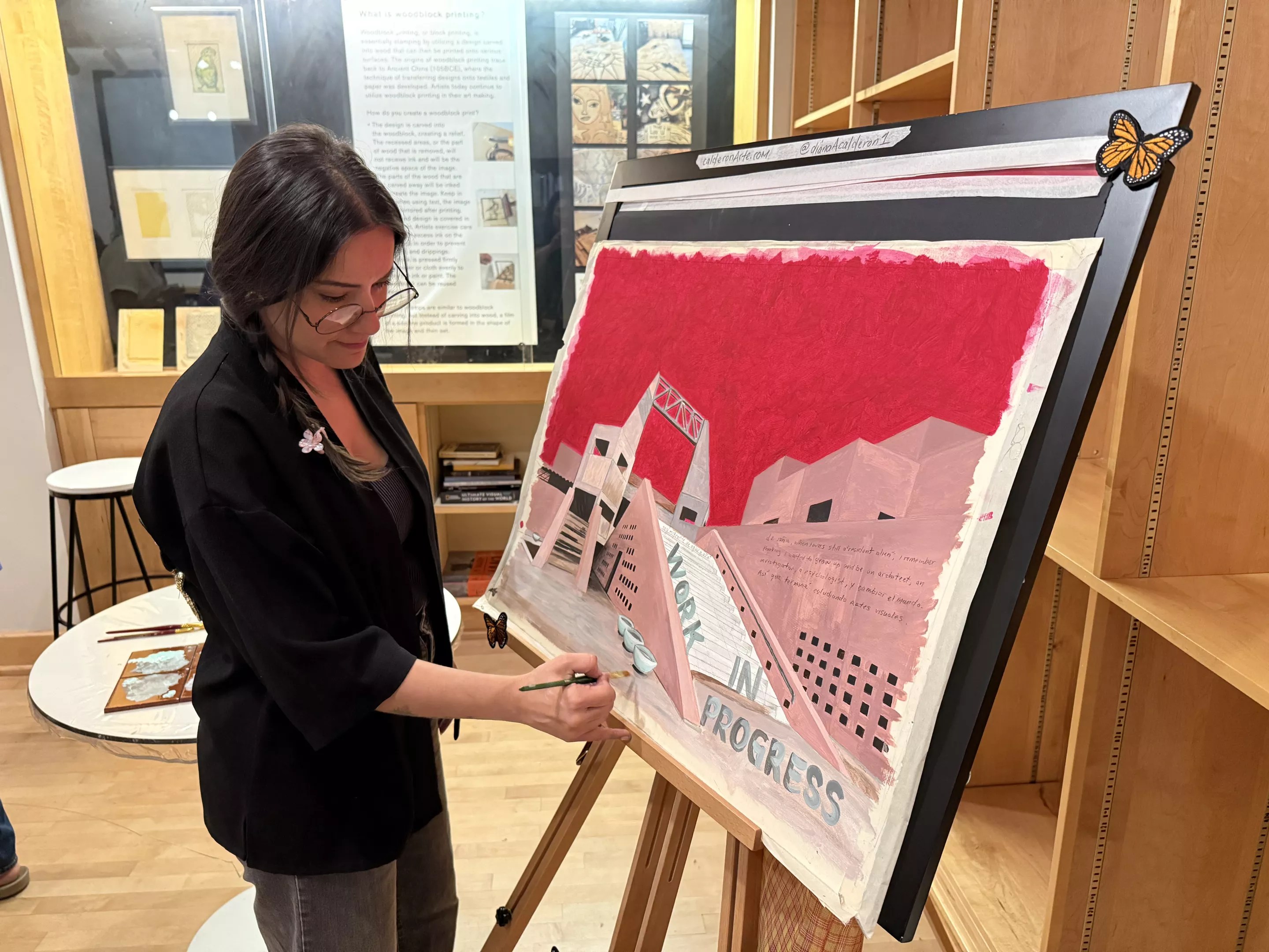 Artist Diana Calderon paints at the opening reception on Sept. 13.