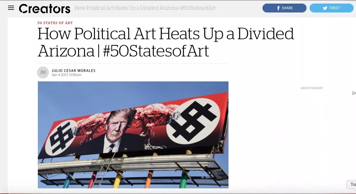But then we took a closer look – specifically at the lead photo on Morales’ piece about political art in Arizona. See, it looked a little too familiar.
