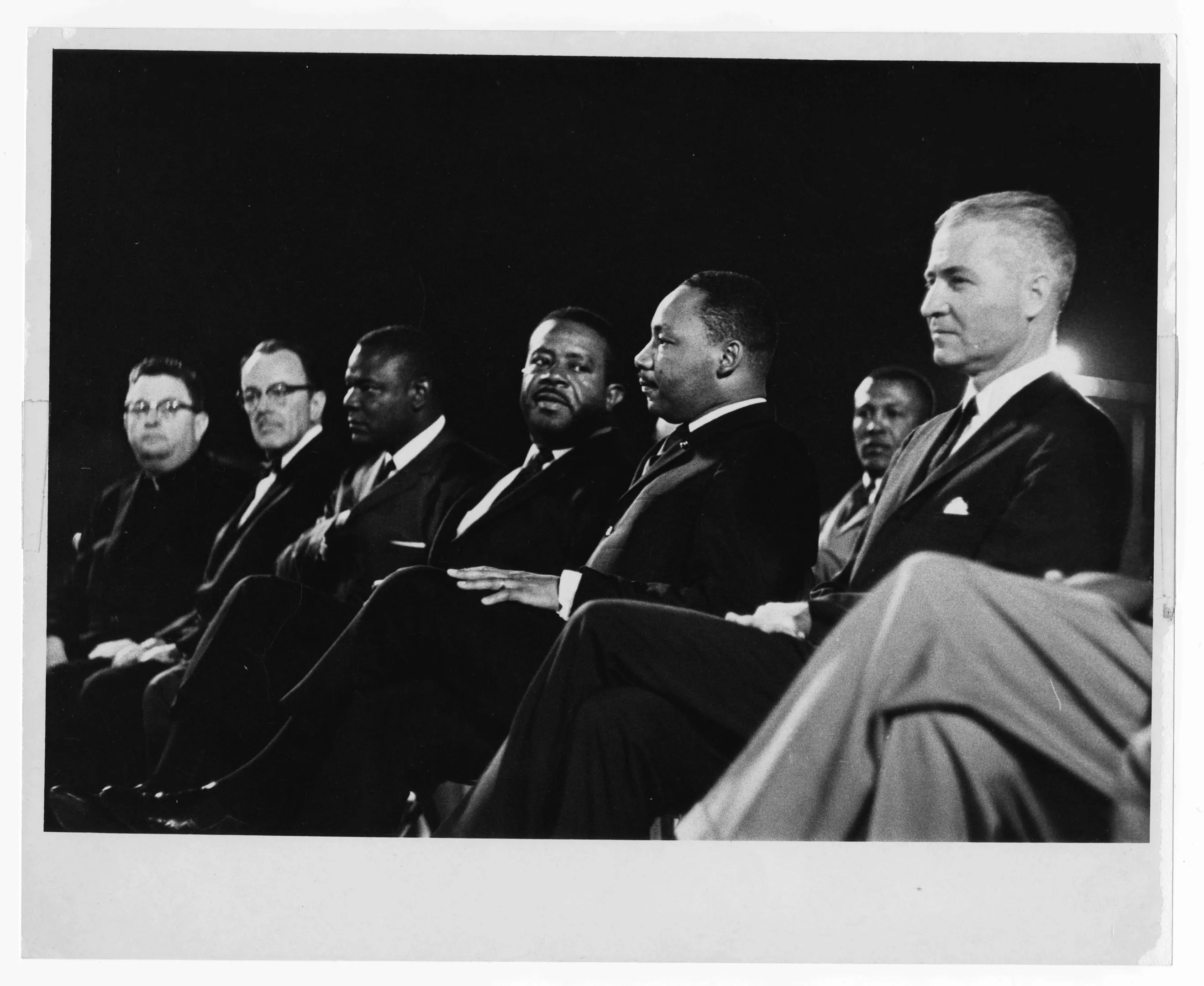 When I ask about audio of Martin Luther King Jr. speaking in Tempe in 1964, Rob Spindler says, “Now there’s a great story.” The University Archives had a photograph with ASU President G. Homer Durham, Martin Luther King, Jr., Ralph Abernathy, the Monsignor Robert Donohoe, and two others.
