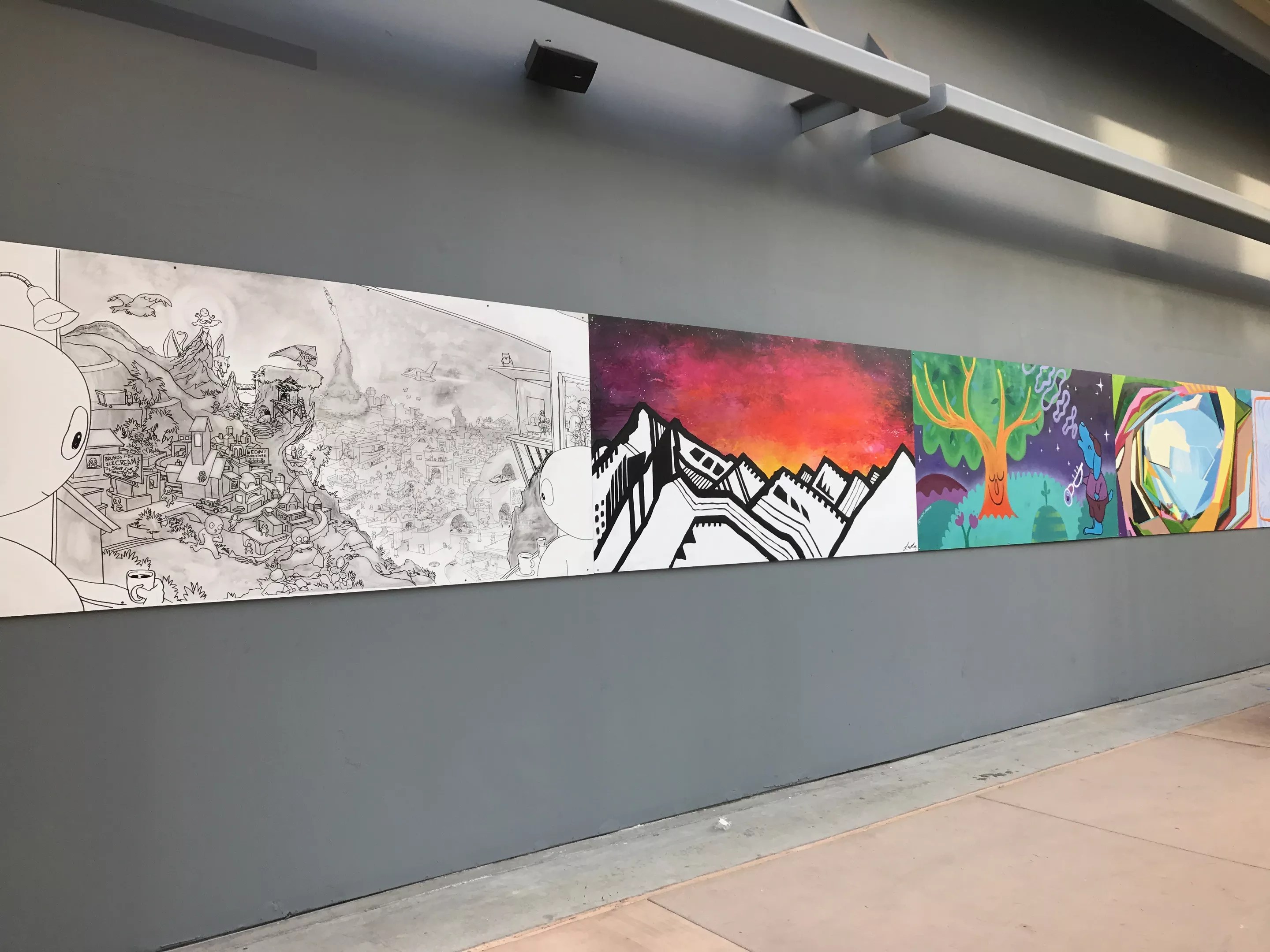 Four of five murals painted during the 2017 fall concert series at Scottsdale Quarter.