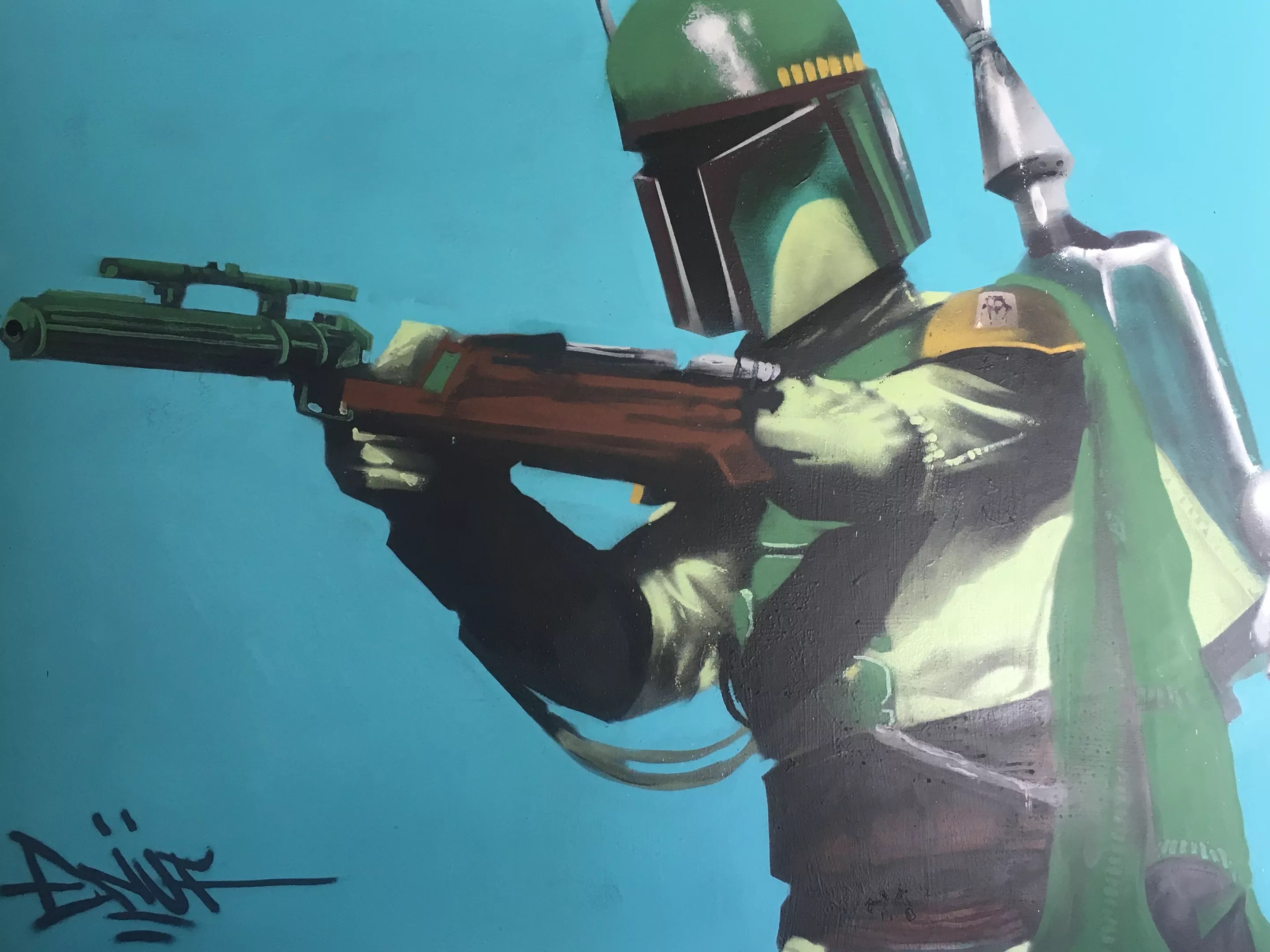 Work by ENUF, an artist featured in “AZ/NM Connection,” that hangs inside the Dressing Room.