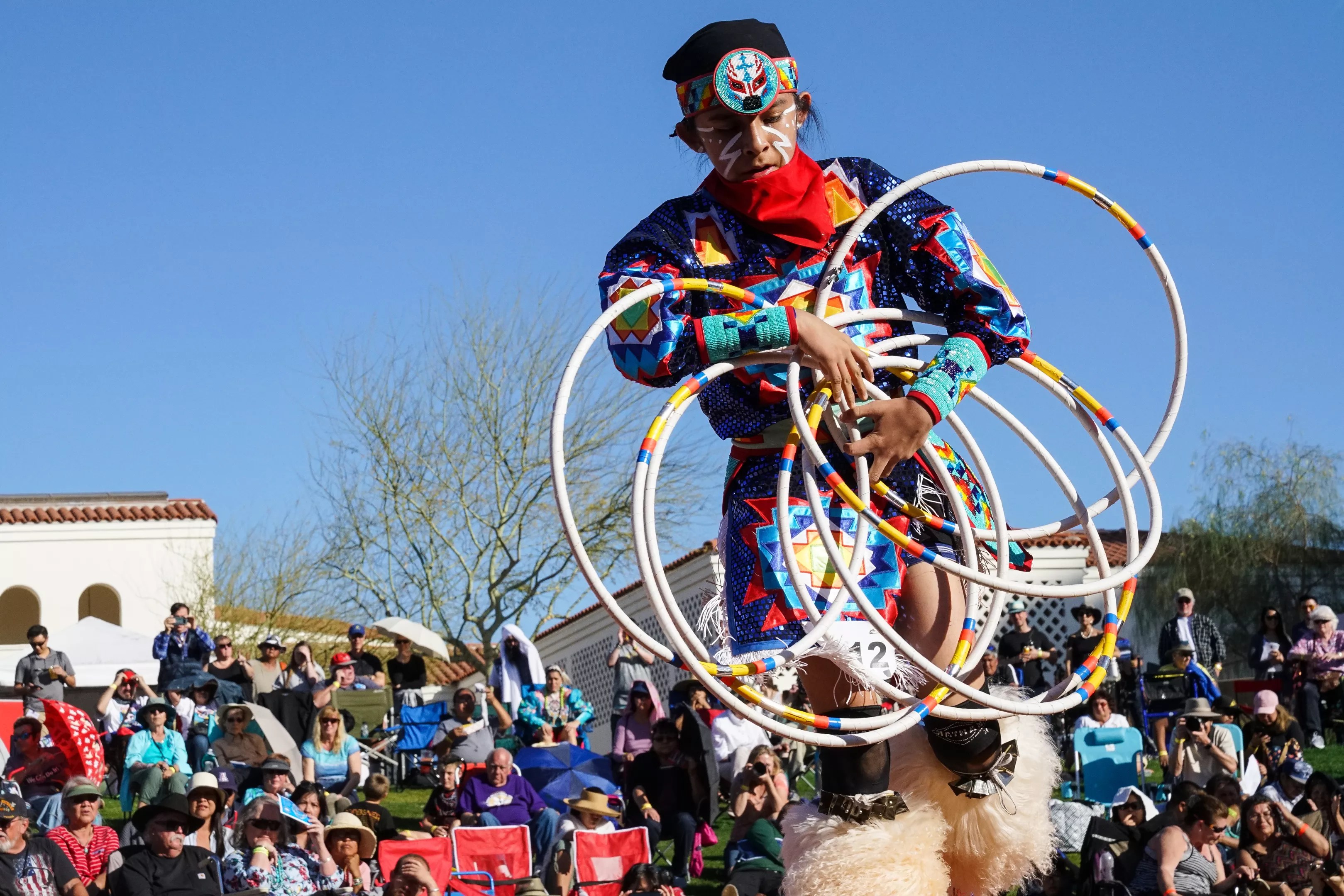 This PGA-affiliated event (often described as “The Greatest Show on Grass”) is notorious in the golf world for its boisterous crowds and the convivial atmosphere that occurs at the TPC Scottsdale, 17020 North Hayden Road, during the week-long tournament. The 2022 edition will take place from Monday, February 7, to Sunday, February 13, and feature some of the world’s top golfers hitting the links as tens of thousands gather inside party tents and skyboxes. General admission ranges from free to $60, depending on the day. A teen competitor at the Heard Museum’s World Championship Hoop Dance Contest. Patrick Thomas Bryant