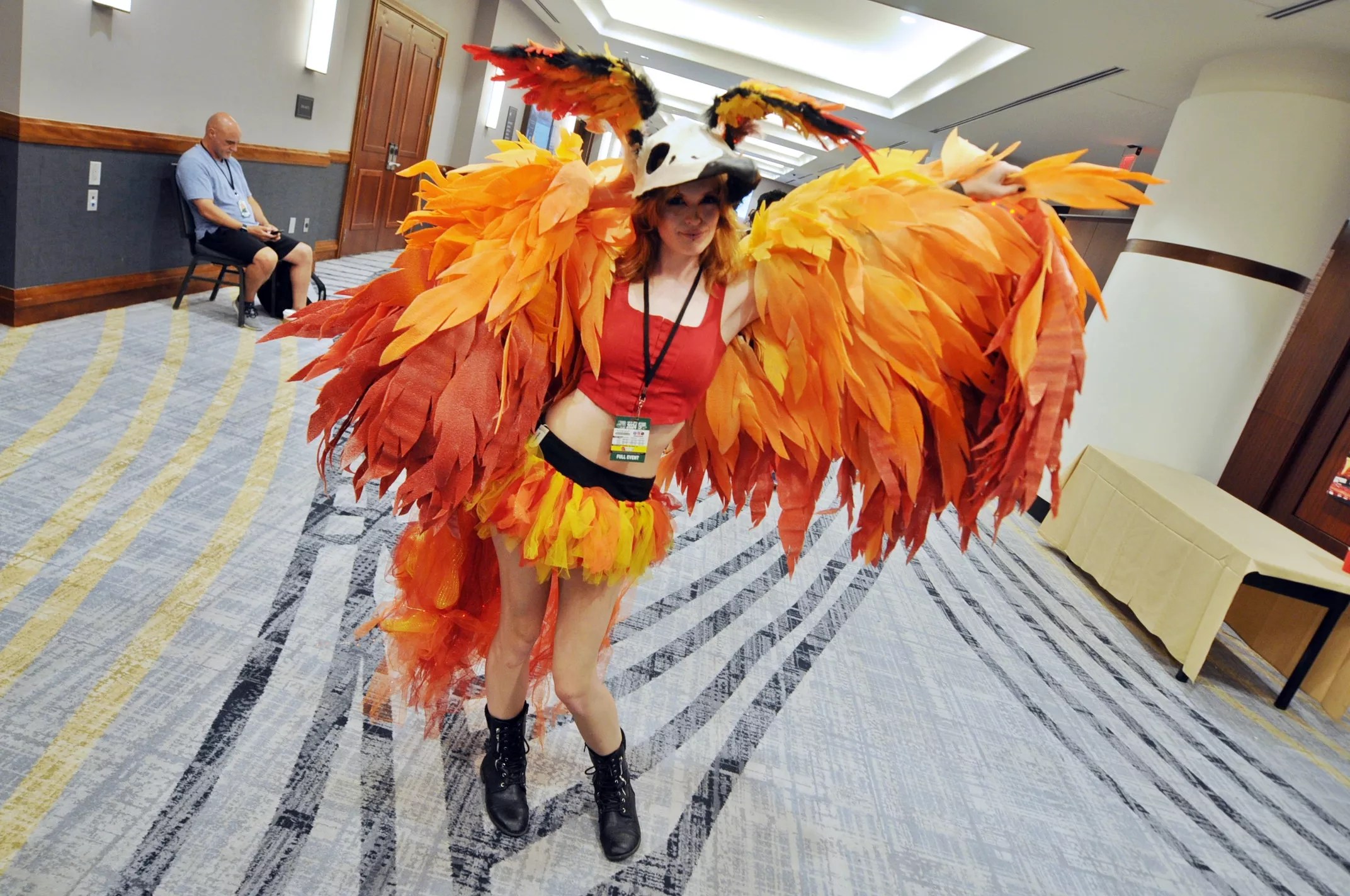 Lux Larkin’s amazing-looking costume is a cosplay representation of a mythical Phoenix.