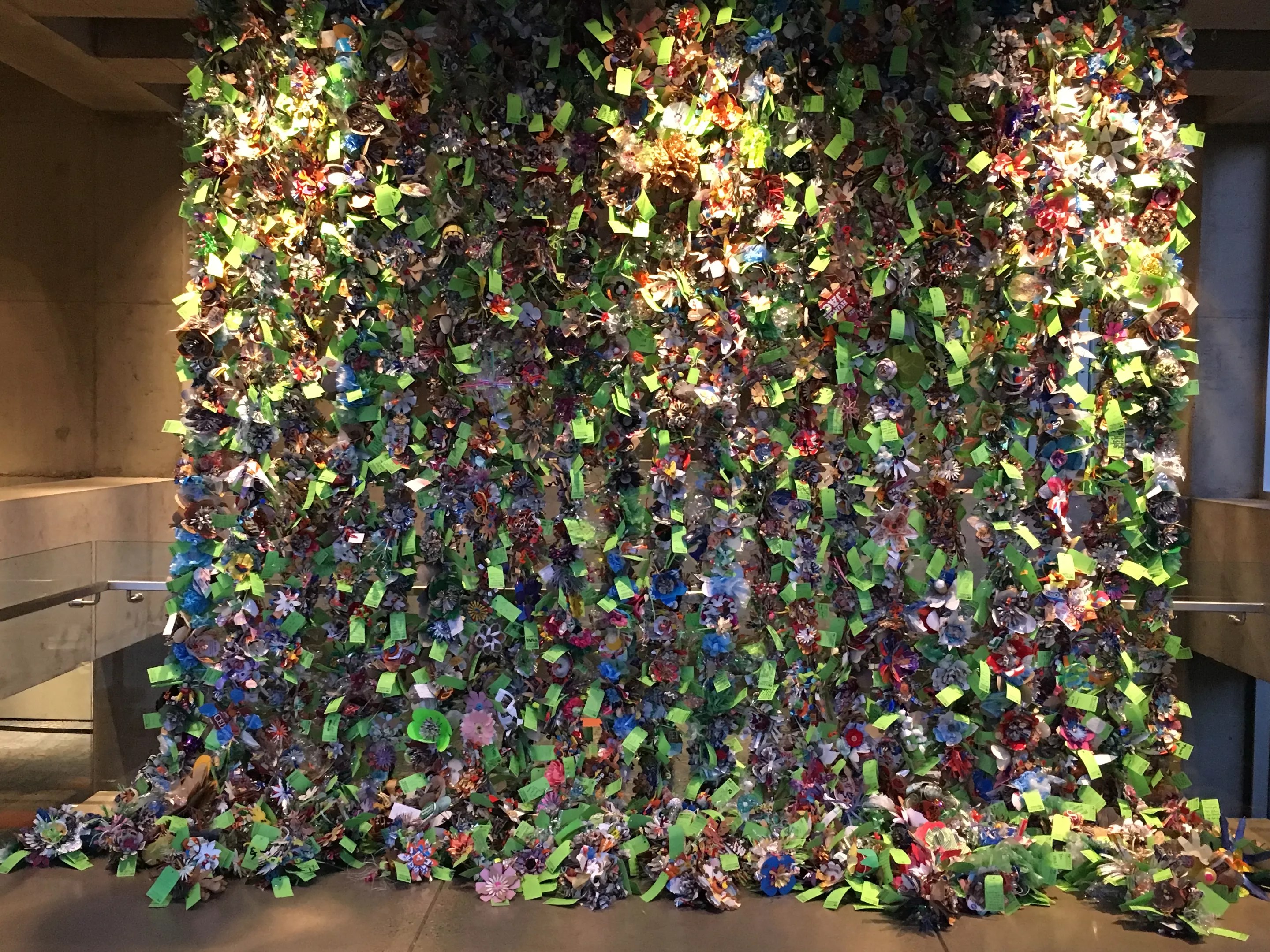 Re-Thanks comprises thousands of flowers made by Morton and community members using recyclable materials, as a way to honor workers who cull recyclables from trash. The project was part of an artist residency with the Phoenix Office of Arts and Culture, which was based at the 27th Avenue Solid Waste Management Facility.